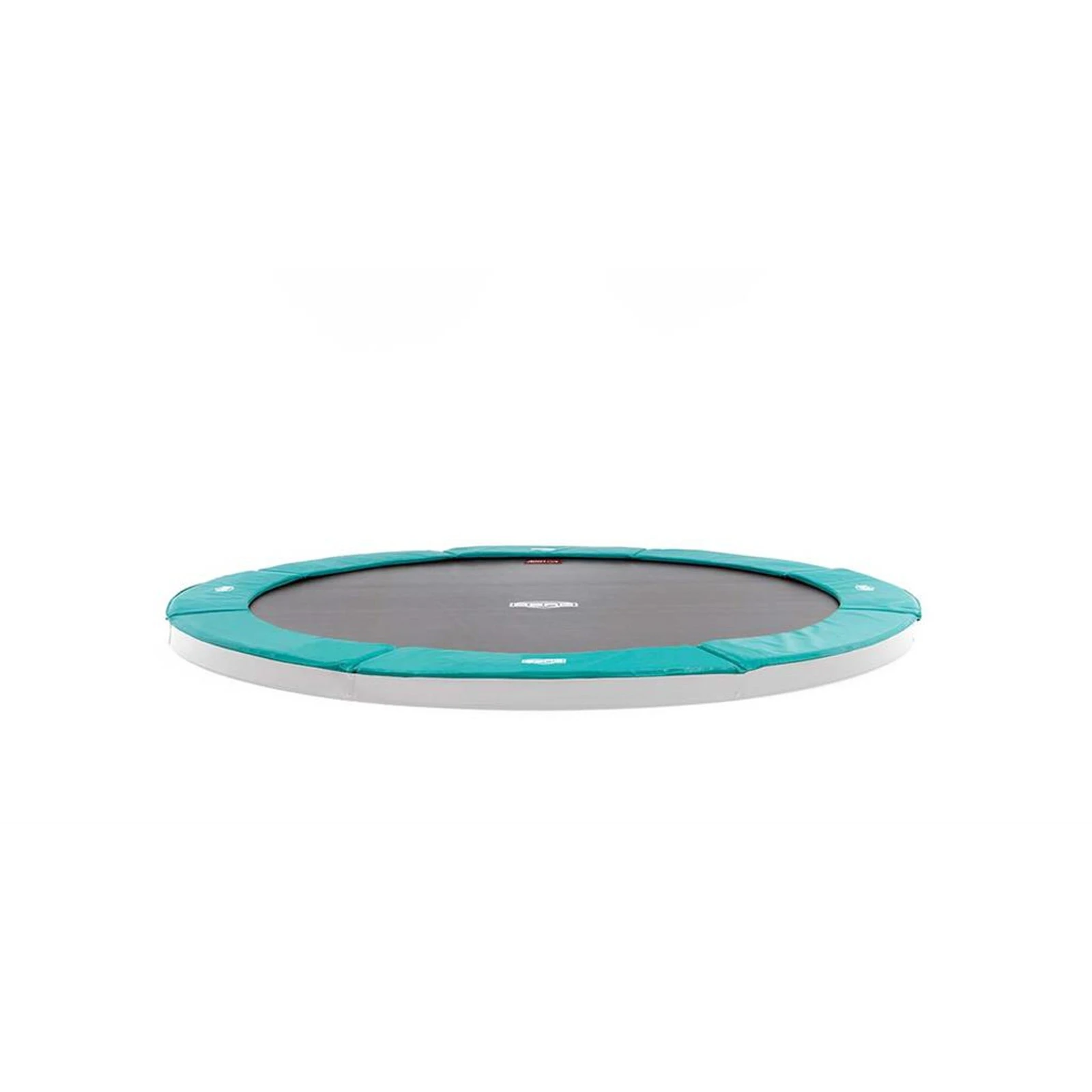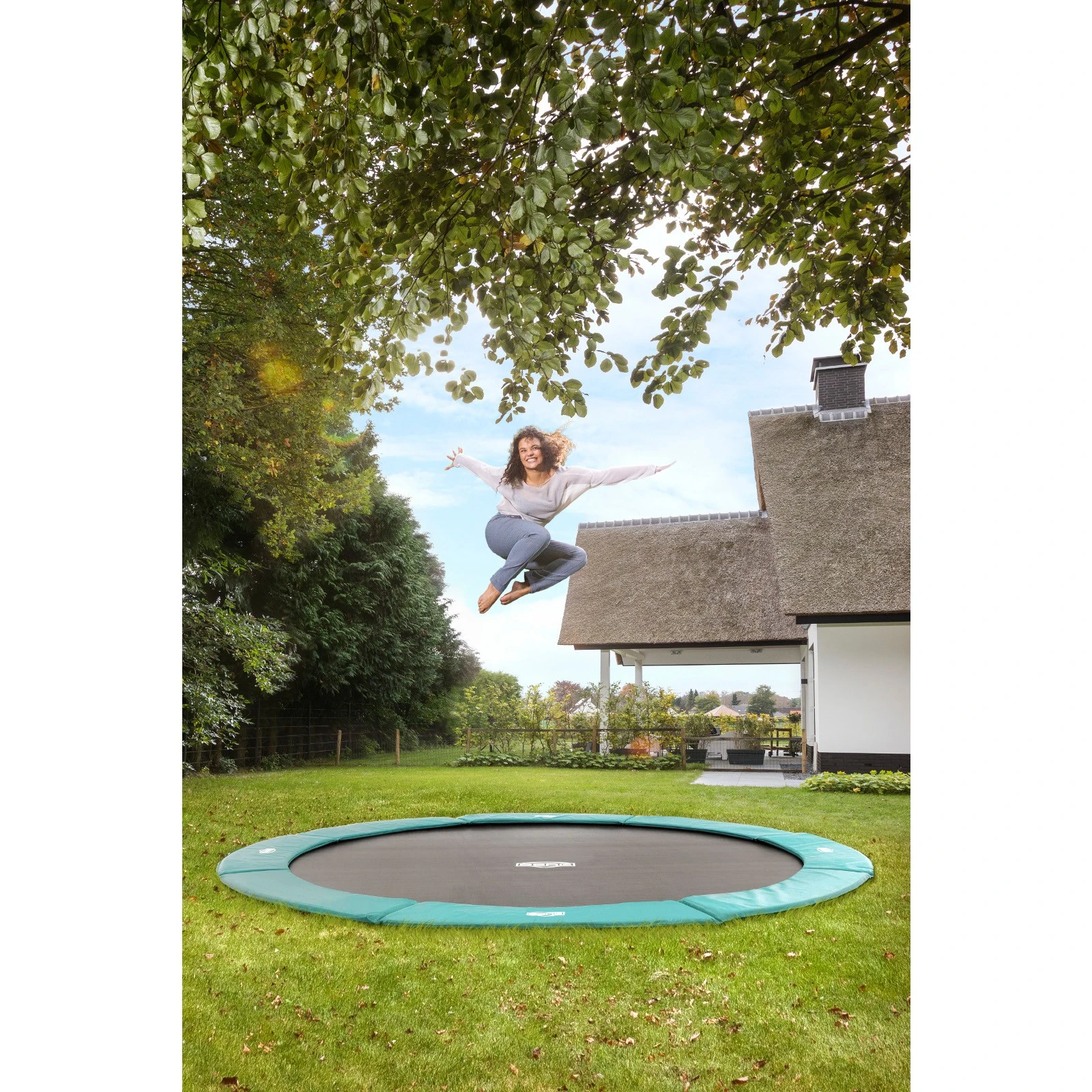 Studsmattan på marknivå passar perfekt in trädgården. Dessutom är det enkelt att komma upp på den. FlatGround Champion-studsmattan finns i färgerna grönt och grått.