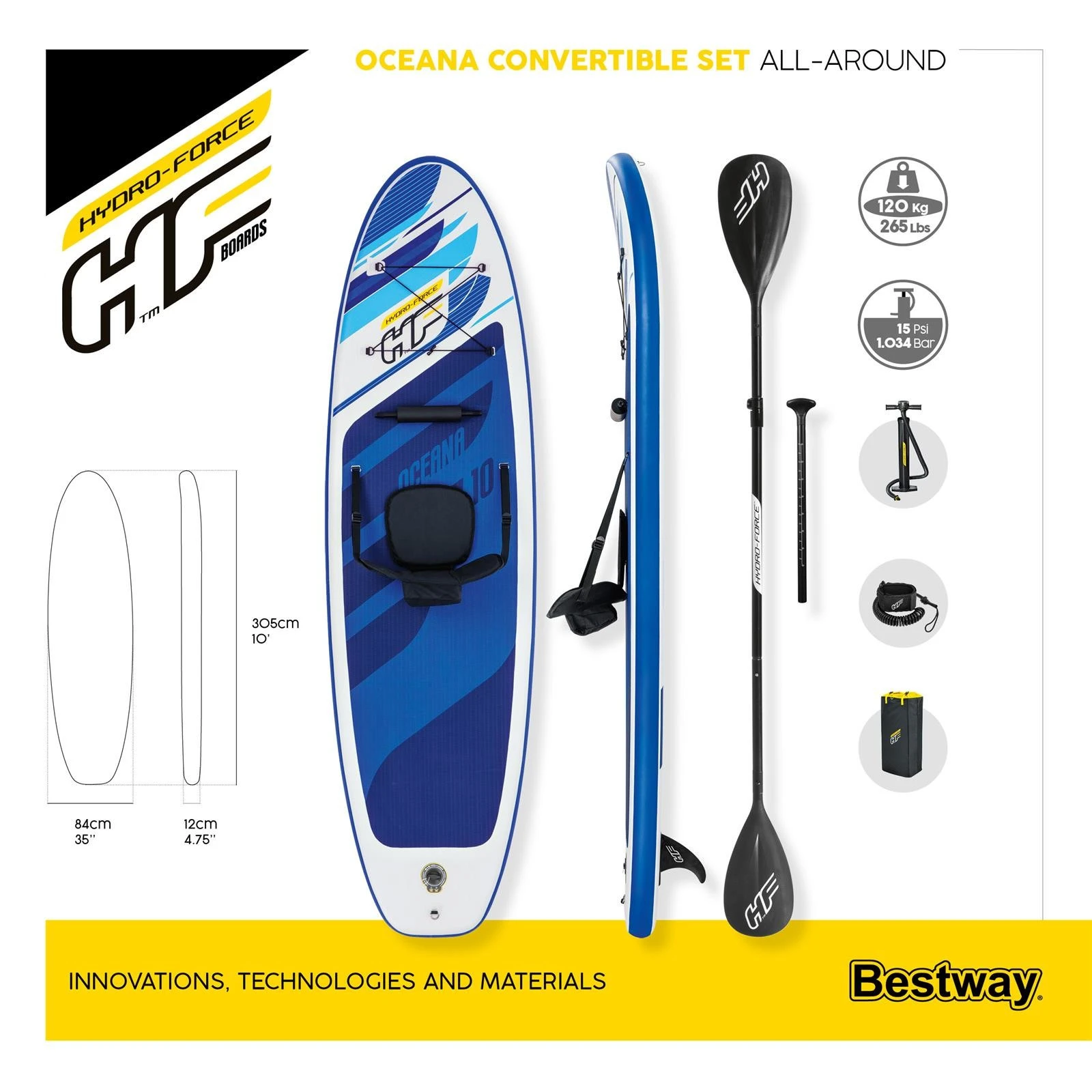 Vill du börja med paddelsurfing? Då är Bestway Hydro-Force SUP Allround Board-Set ”Oceana” det bästa valet för dig! Brädan ”Oceana” är idealisk för nybörjare och duktiga paddlare.