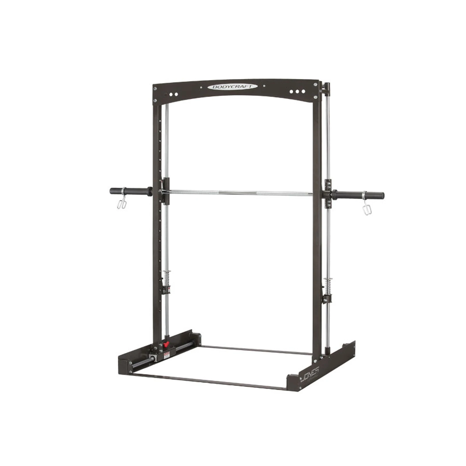 Just många inställningsmöjligheter säkerställer att träningen på Bodycraft Multipress Smithmaskin kan gott anpassas för alla. Bodycraft Smith Maskin Jones Freedom lämpar sig även bra för träning med skivstång och vikter. Max säkerhet ger också de 20 lägen för skivstången. Fjädrade säkerhetsplatser är höjdjusterbara för begränsad rörlighet av hanteln nedåt. Denna funktion är mycket hjälpsam vid övningar som knäböj eller bänkpress utan träningspartner. Det finns även en chin-up stång på Bodycraft Smith Maskin Jones Freedom som duger bra för många övningar även den.