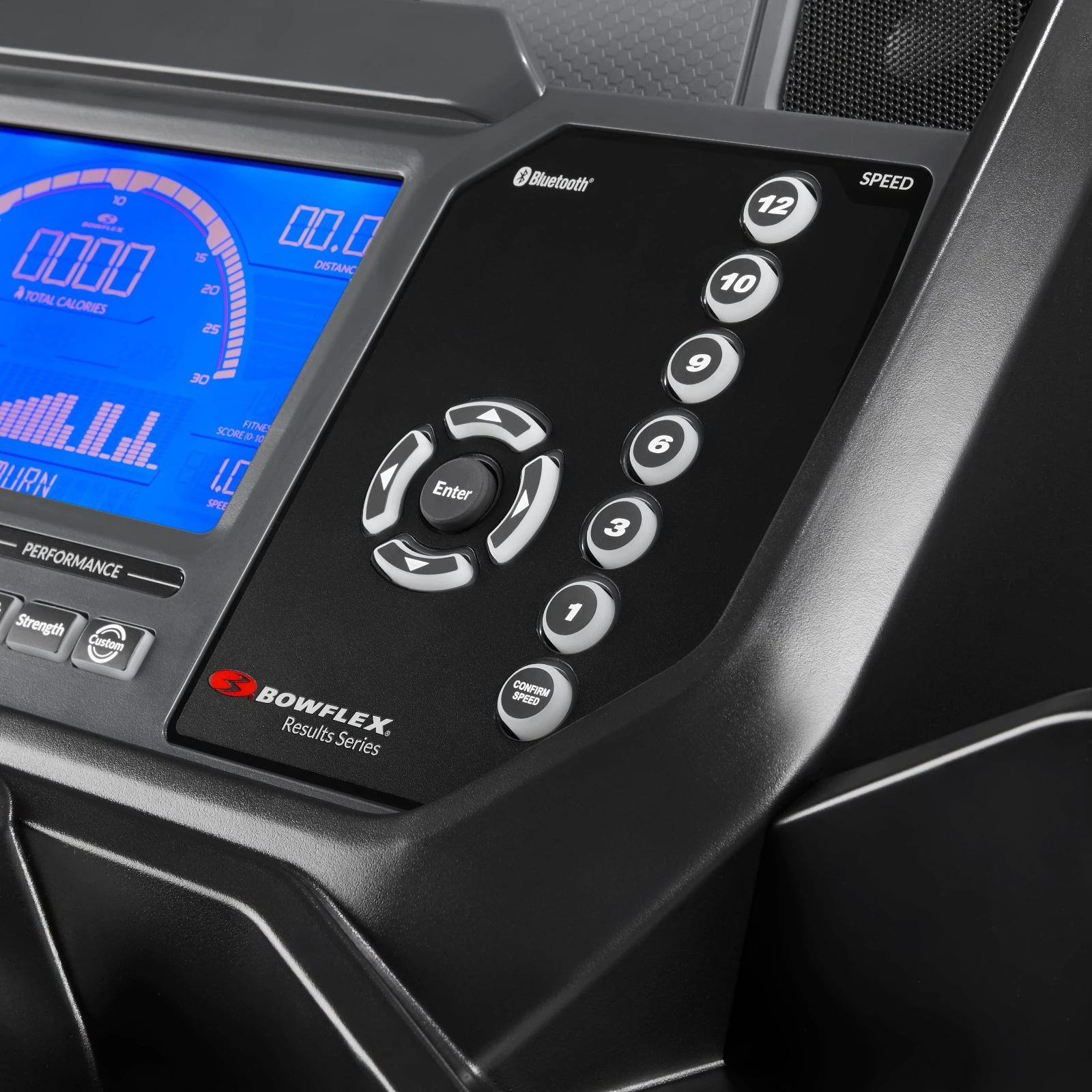 Löpbandet BXT128 från Bowflex är utrustat med en lättanvänd konsol. Alla relevanta träningsdata, som t. ex. sträcka, tid och hastighet visas på den 19 cm stora upplysta LCD-skärmen.