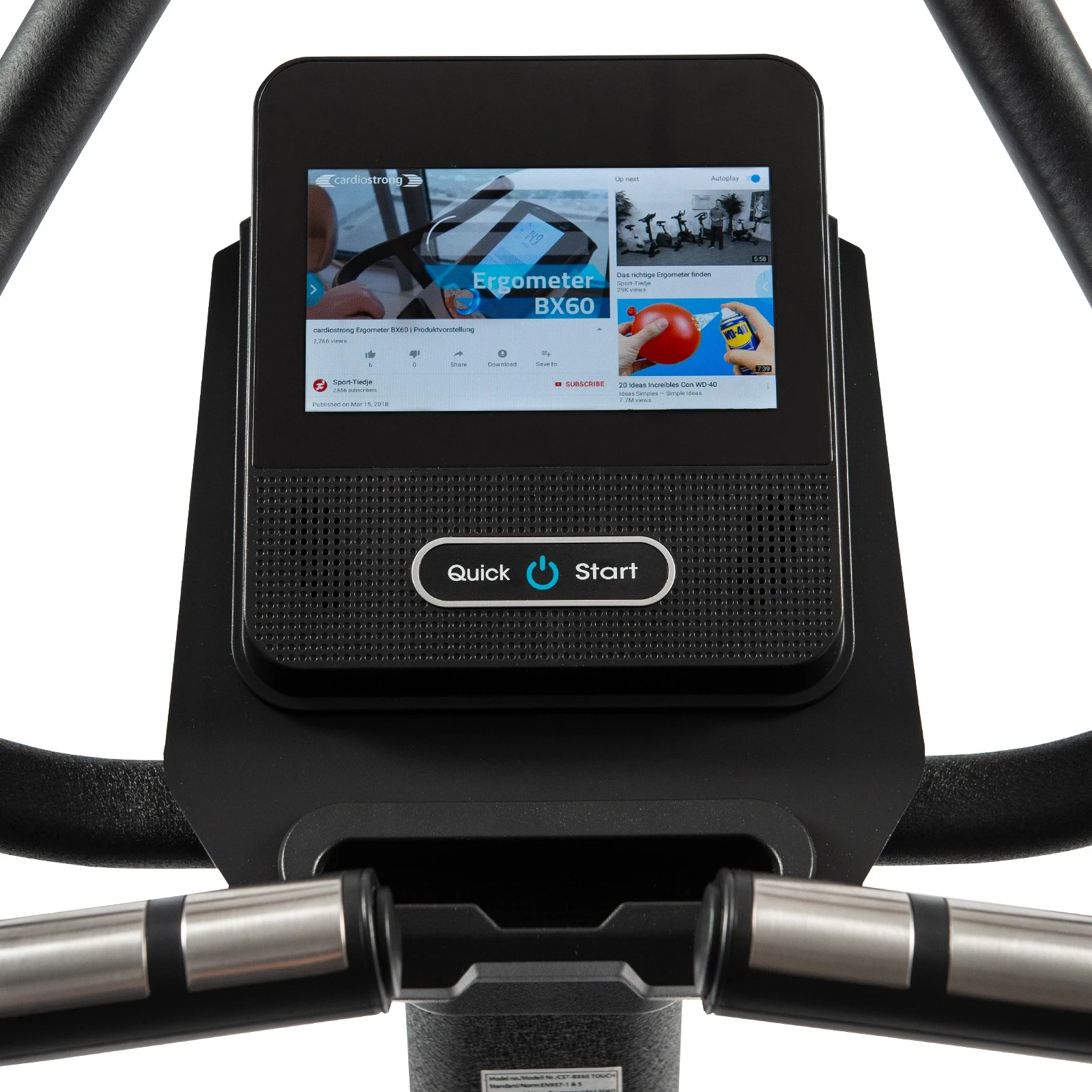 - cardiostrong BX60 Touch | Motionscykel med pekskärm | Appar: youtube, Netflix, Spotify, Kinomap, Chrome