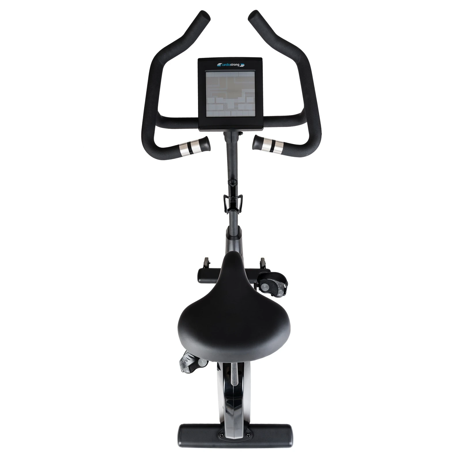 cardiostrong motionscykel BX90 är utrustad med en stor pekskärm. Programmen väljs och startas med endast en knapptryckning. På den stora skärmen visas all relevant träningsdata. Dessutom visar den en grafisk bild av den aktuella motståndsnivån – vilket är mycket bekvämt vid till exempel intervaller: du kan se hur den välförtjänta pausen kommer allt närmare. Skärmen kan också justeras i lutning. På så sätt har du har bra överblick över din träning i alla sittpositioner.