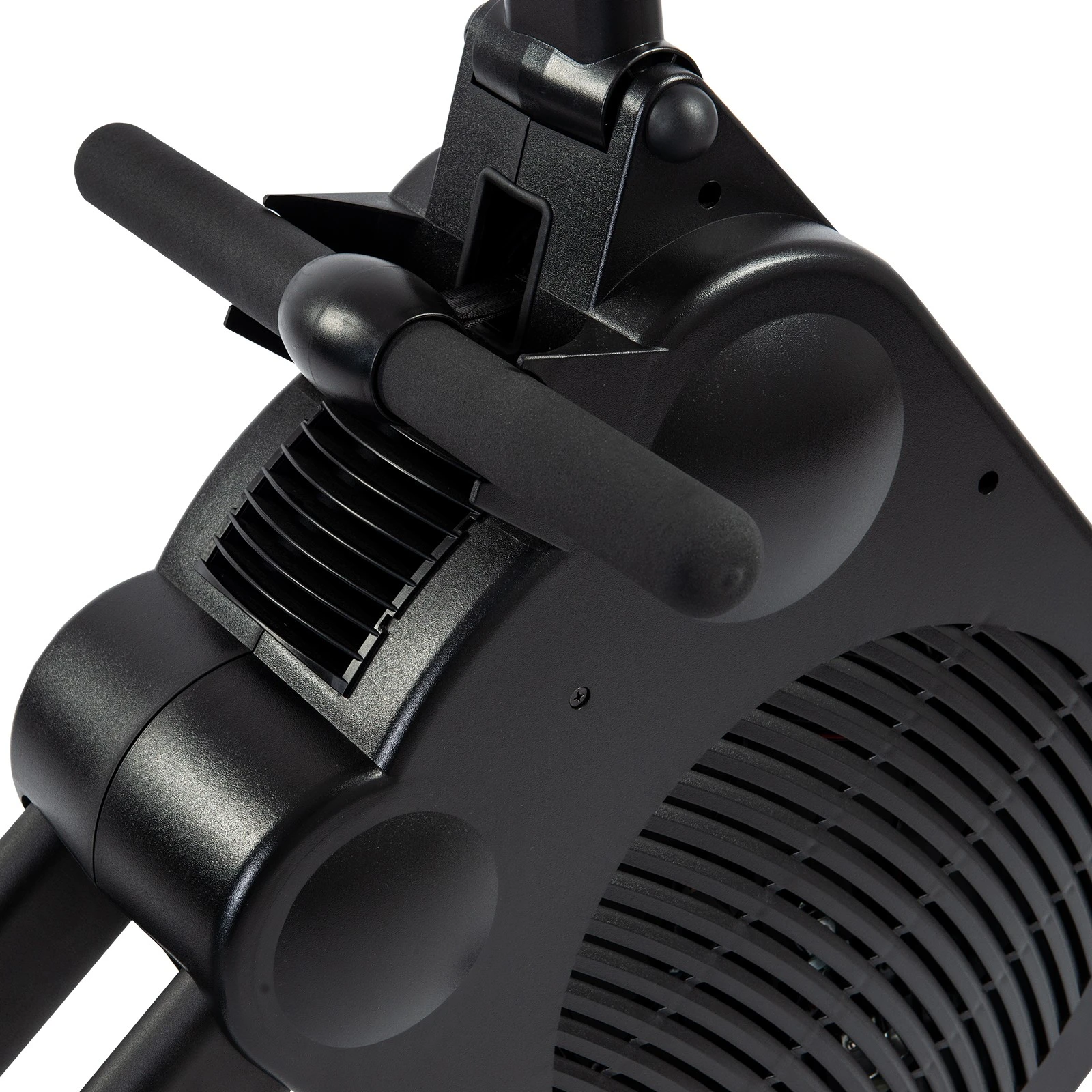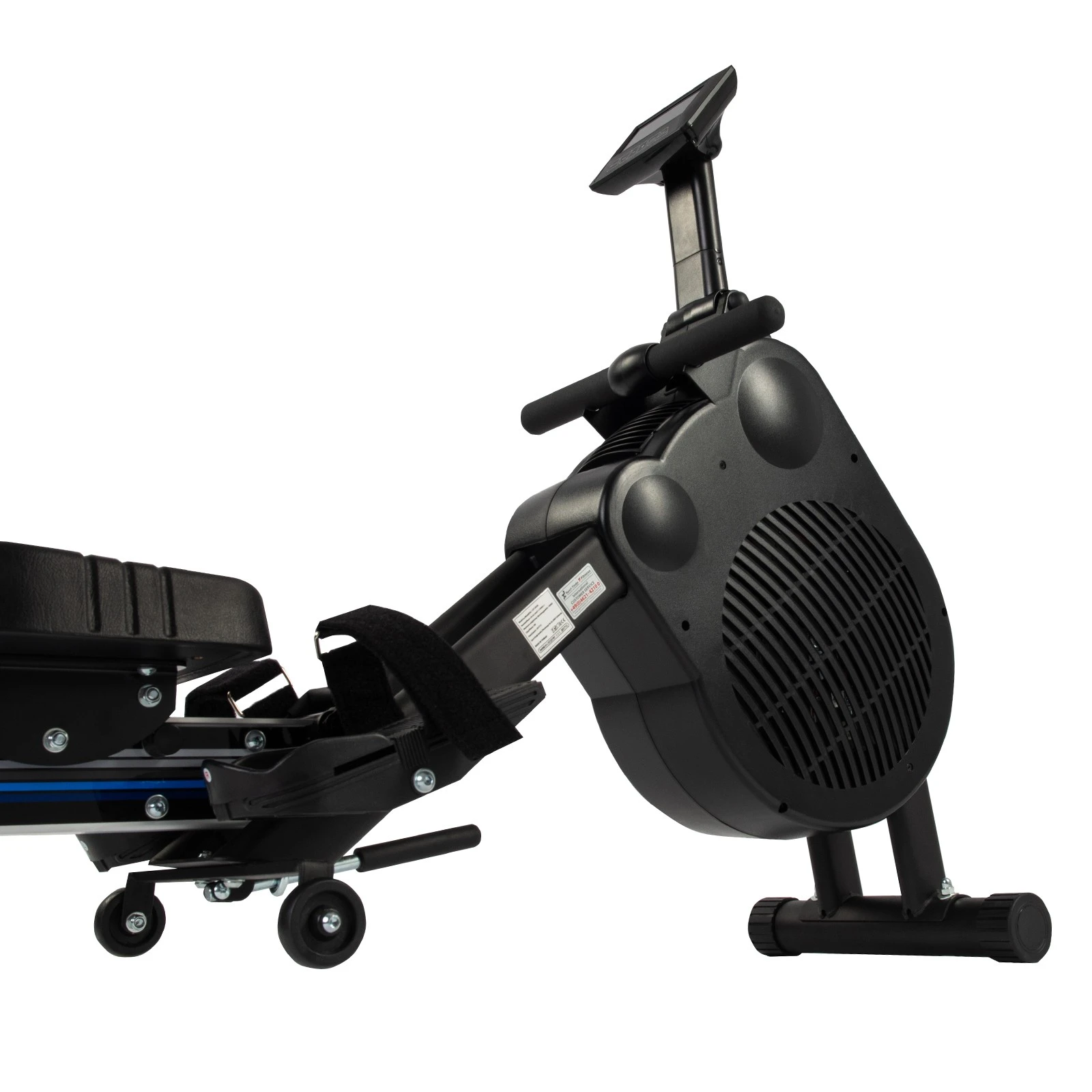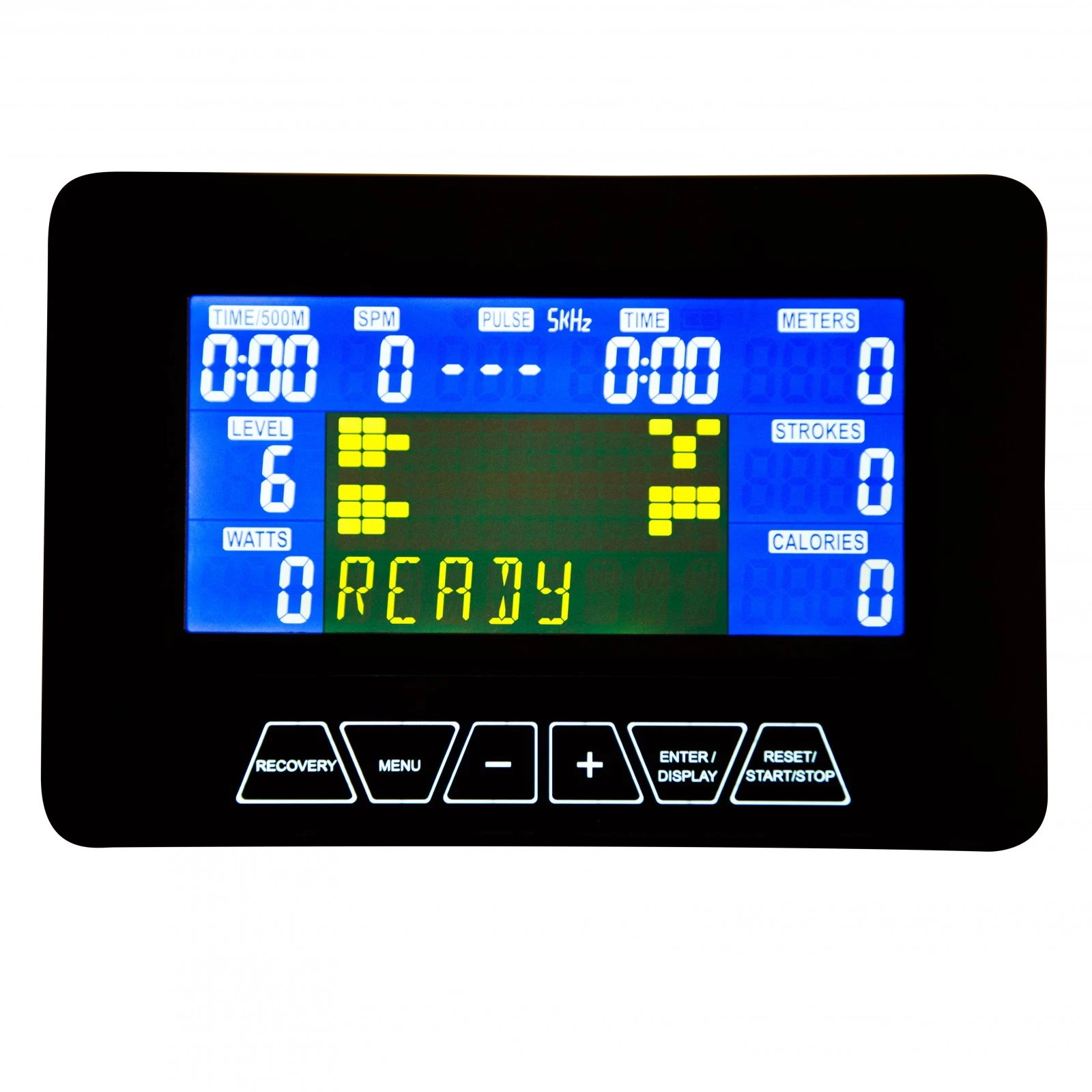 Kombinationen av luft- och magnetmotstånd garanterar, vid sidan ett jämnt roddrag, också en smidig och jämn rörelse under träningen. Olika prestationsnivåer och träningsprocesser kan kontrolleras av 16 motståndsnivåer. Med de tre pulsstyrda träningsprogrammen och ett separat tillgängligt bröstband kan du också utföra konditionsträning. Den stora och användarvänliga LCD-skärmen visar all relevant träningsinformation under träningen.