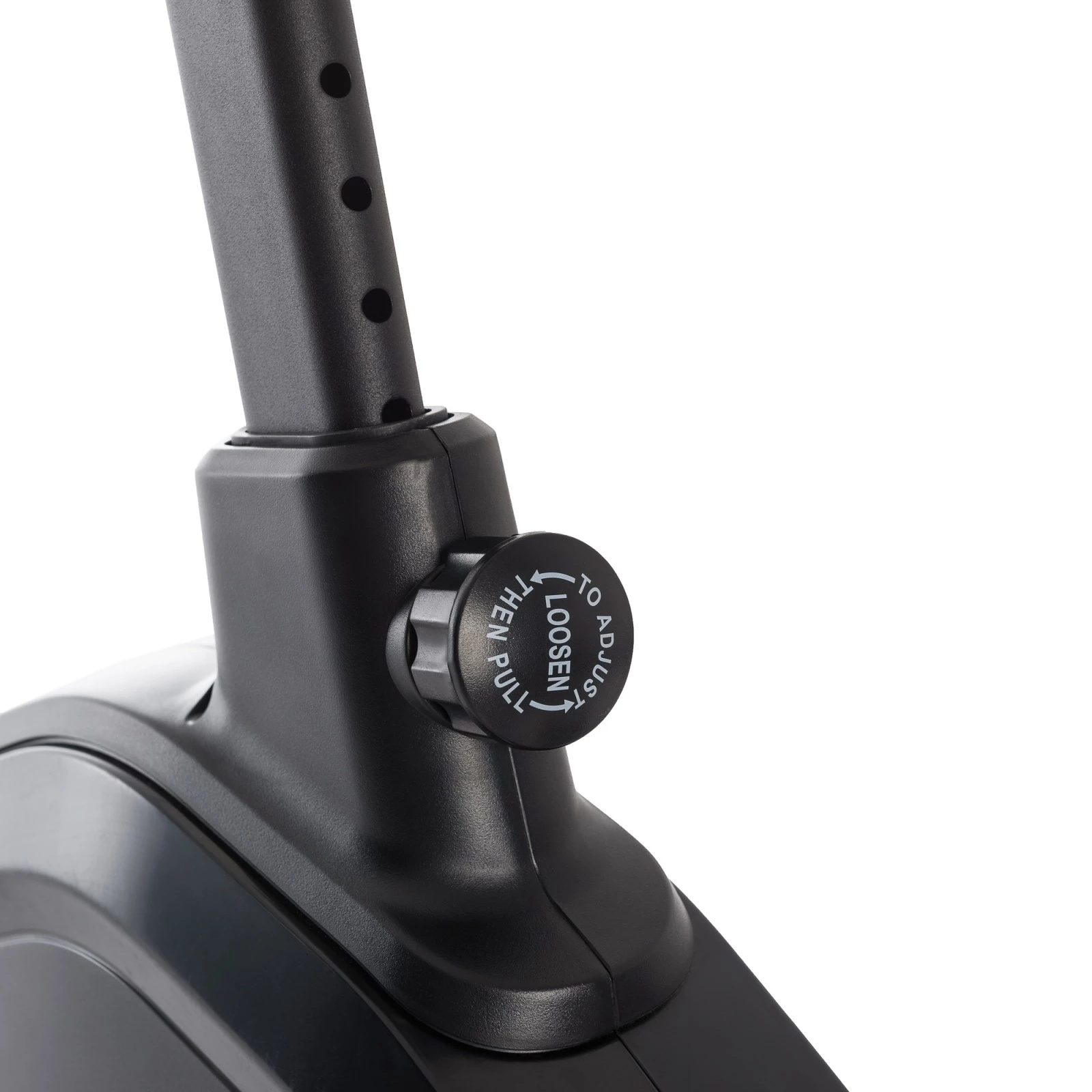 Darwin ergometer HT40 erbjuder en bekväm sittställning tack vare att styret kan justeras i lutning och sadeln kan justeras vertikalt och horisontellt. Justera till exempel handtagen lite mer framåt, för en mer tävlingsliknande sittställning. Den lätta kontrollen bidrar också till komforten. Med ett så kallat jogwheel, en vridknapp, kan alla justeringar göras på nolltid.