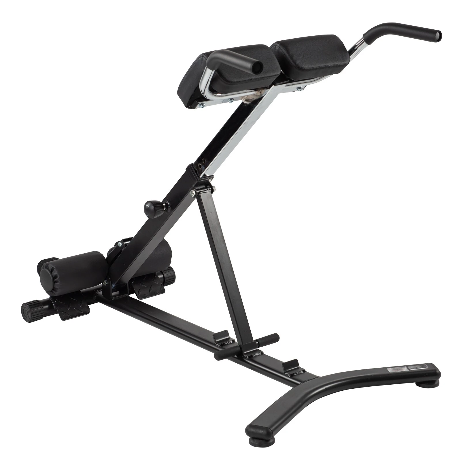 Lutningen på denna Hyper Extension Trainer kan enkelt justeras, så att du kan träna med olika svårighetsgrader. Ramen med vaddering kan justeras i höjd och är därför bekväm att använda för människor i alla storlekar. Vadstoppningen kan vridas fritt och anpassar sig därför perfekt till användaren och ger bra stöd när du utför olika övningar.