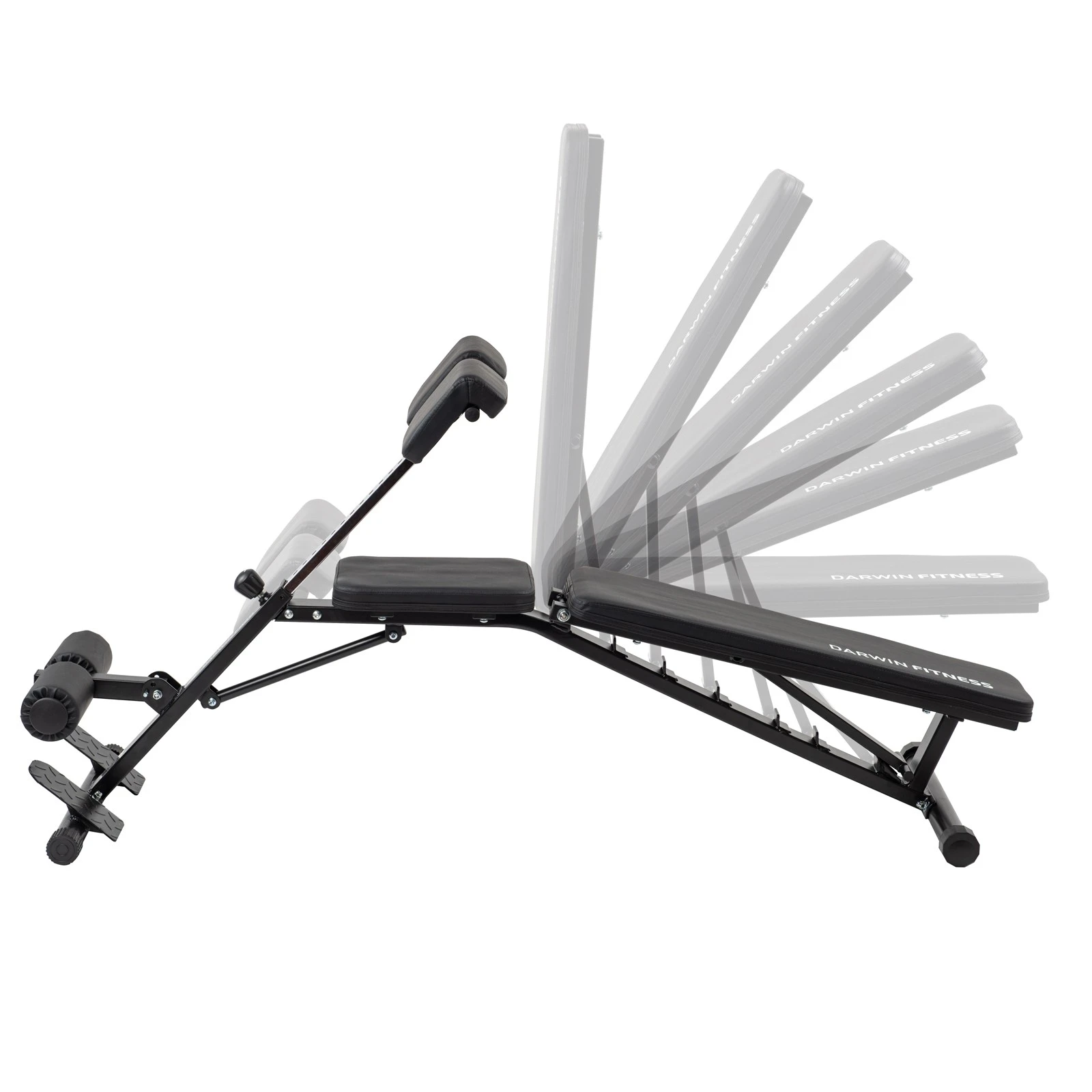 FB60 från Darwin Fitness är en superstabil träningsbänk som också erbjuder bra träningsmöjligheter för biceps och rygg. Den medföljande curlpulten kan justeras i höjd, men kan också tas bort när som helst för klassiska bänkövningar. Bredvid curlpulten finns också en hyperextensionstränare som kan användas för att träna ländryggen.