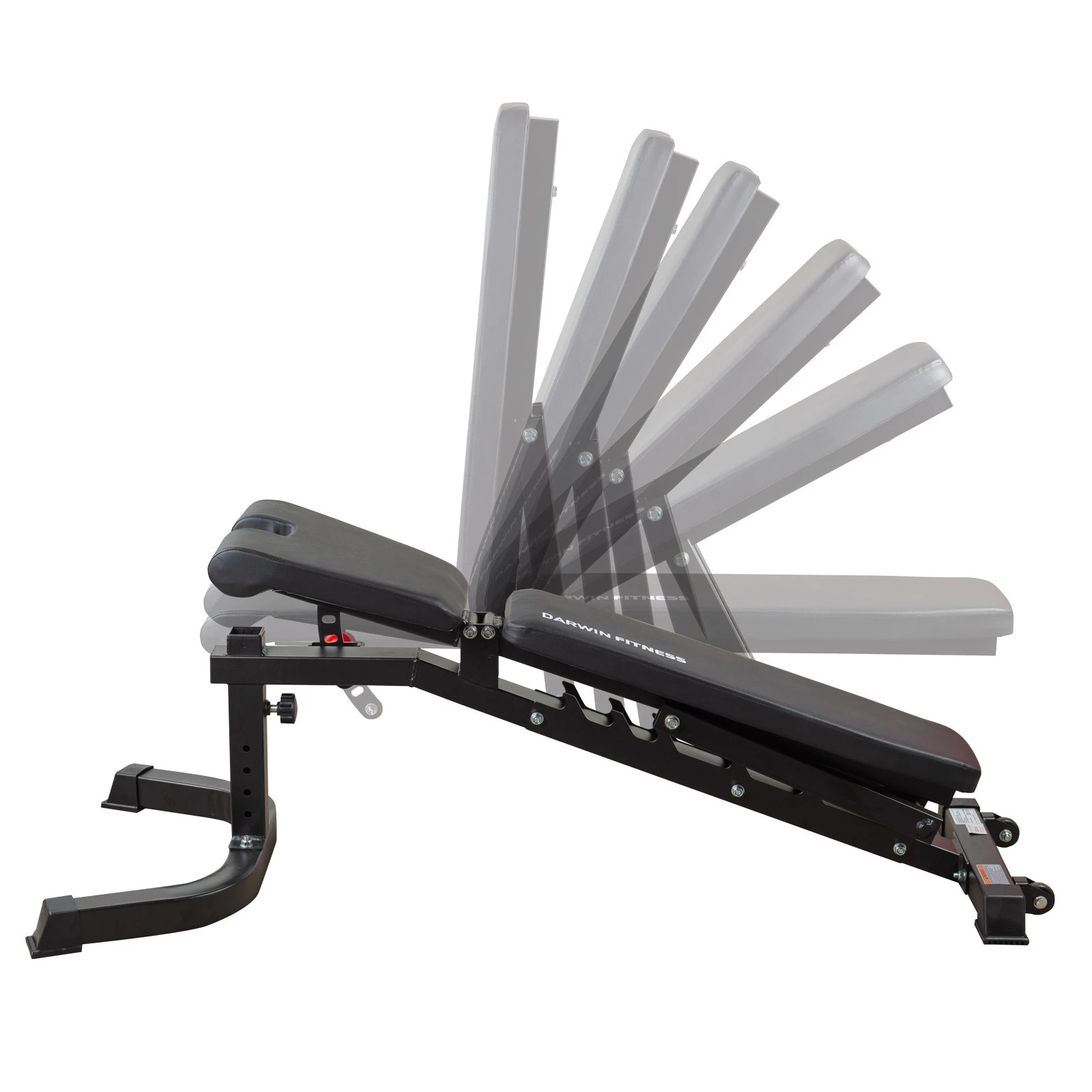 - Alltid i rätt position: Tack vare det multijusterbara ryggstödet (7 steg) och sitsen (3 steg) tränar du alltid i optimal position för respektive övning. Dessutom möjliggör det justerbara ryggstödet övningar som t.ex. bänkpress på en rak eller sned träningsbänk eller på en bänk med negativ lutning.