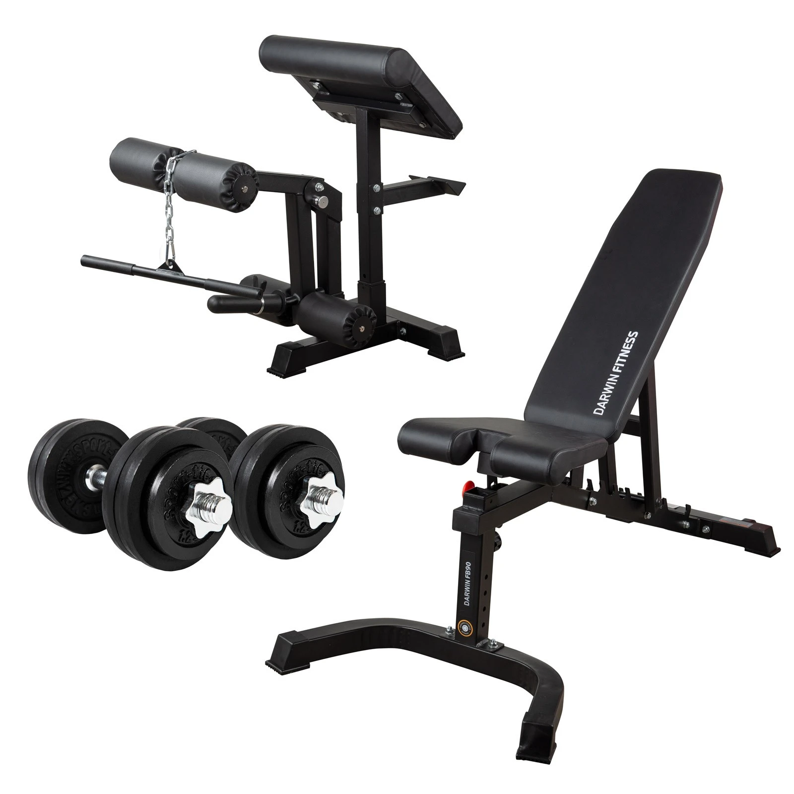 Darwin träningsbänk FB90 och 2 hantlar på 15 kg