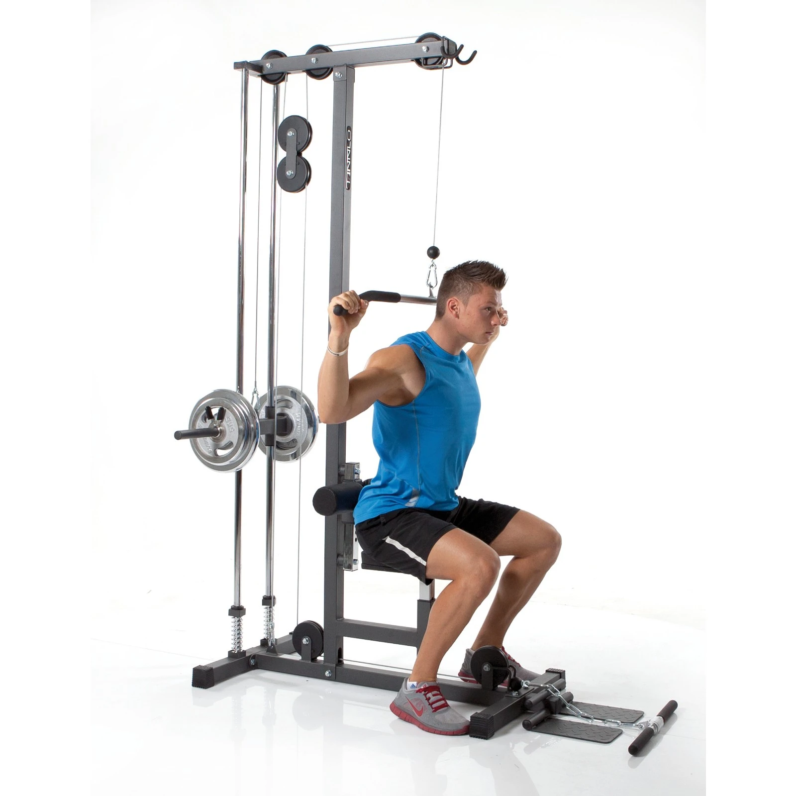- Inkl. latsstång (övre kabeldrag), tricepsstång (lägre kabeldrag) och klämmor. Vikterna på bilderna finns att köpa till.