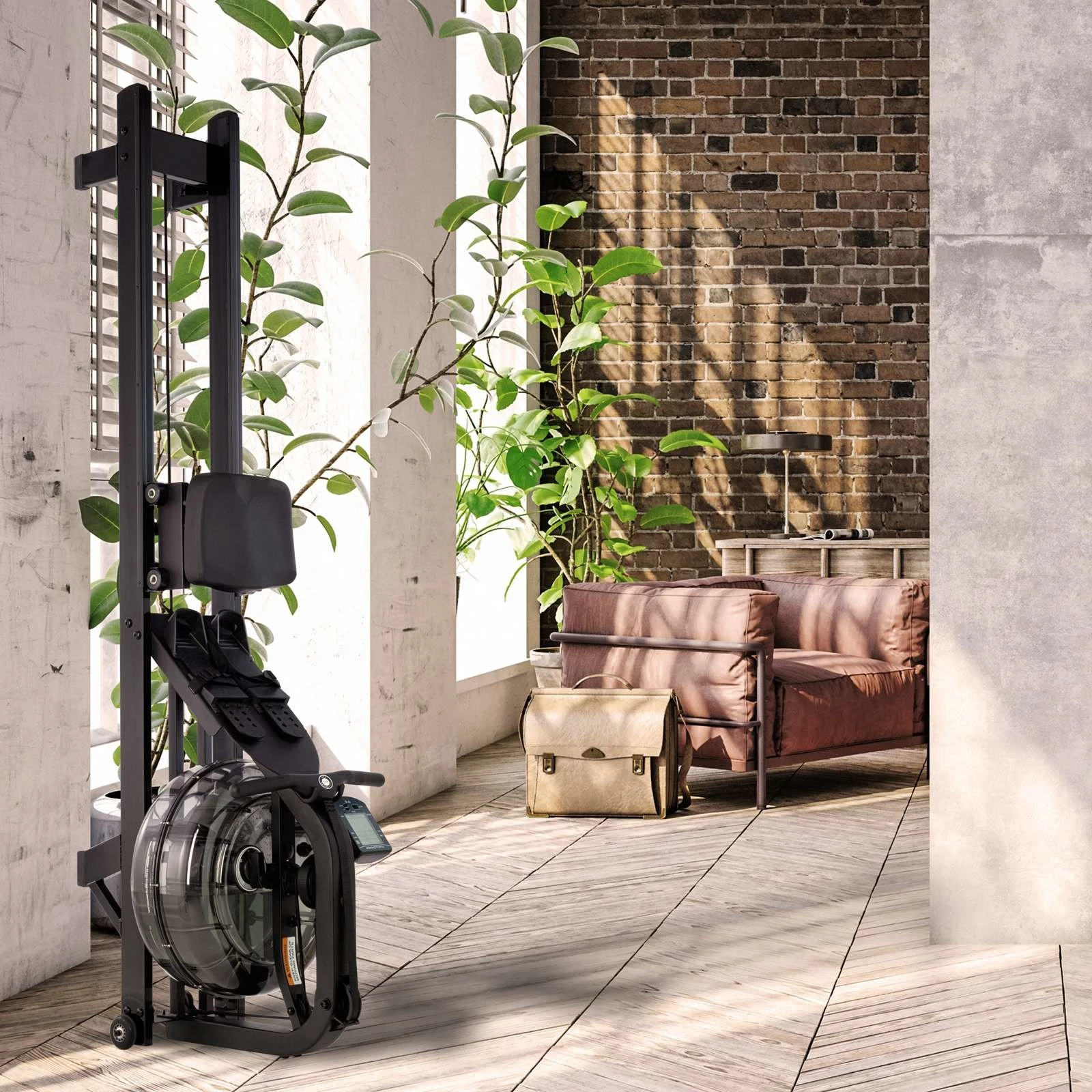 150 kg - dimensioner i uppställt läge – First Degree Fitness roddmaskin NEON Pro V Black: