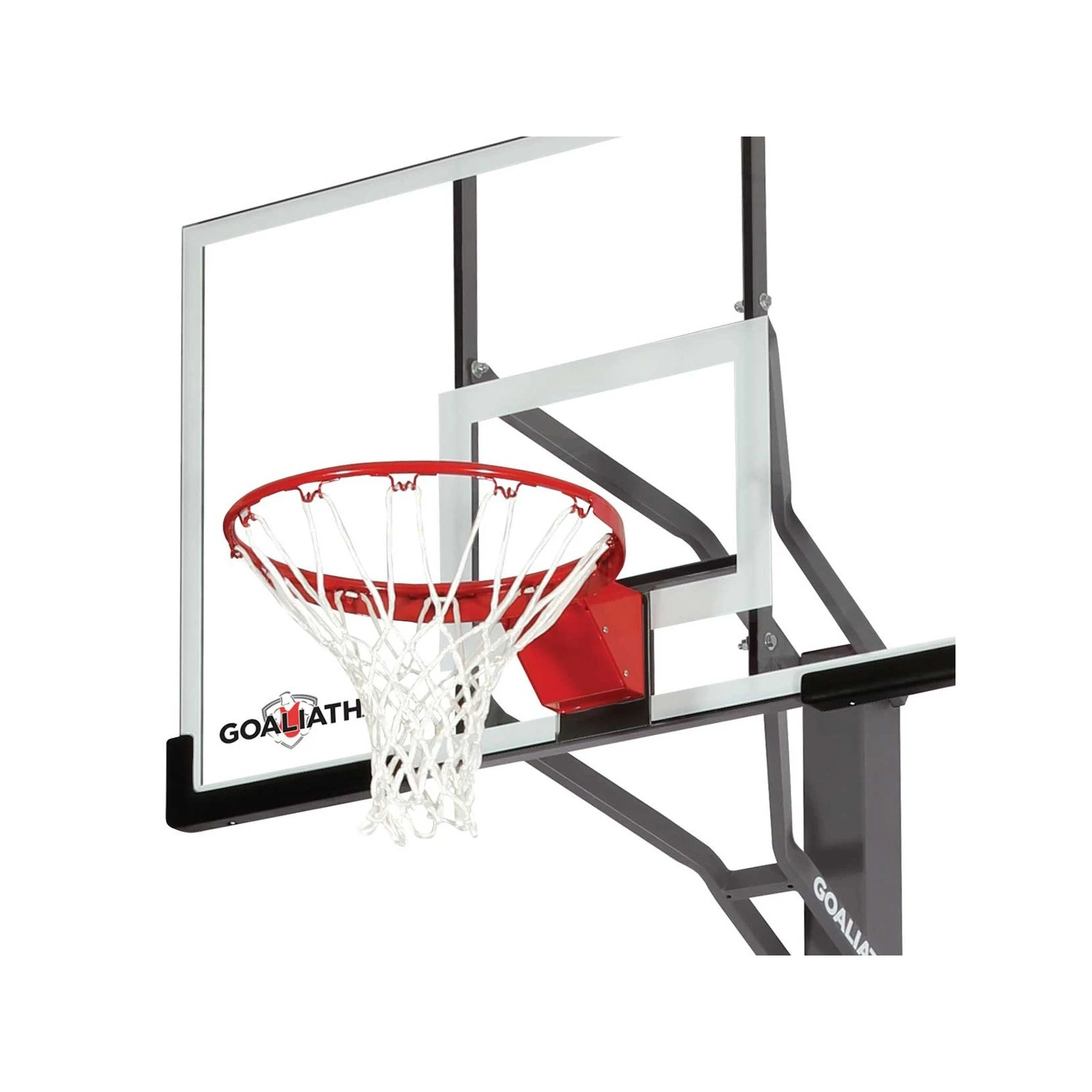 Goaliath basketställning GB54 är utrustad med en pulverlackerad stolpe i stål, en backboard på 137 x 84 cm och en användarvänlig Quick-Play-monteringsfunktion. Denna funktion gör monteringen så enkel som möjlig så att de delvis förmonterade komponenterna och Pro-Style Breakaway-korgen snabbt kan sättas ihop. Pro-Style Breakaway-korgen är en fjäderaktiverad basketkorg som precis som en professionell basketkorg fjädrar vid belastning. Dessutom har Goaliath basketställning GB54 en vev med vilken korgens höjd steglöst kan justeras från 2,3 till 3,05 meter.