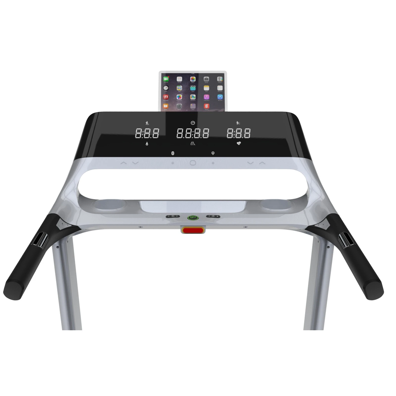 handsensorer för pulsmätning, - OBS: pulsband för pulsmätning ingår ej – finns att köpa separat som tillbehör
