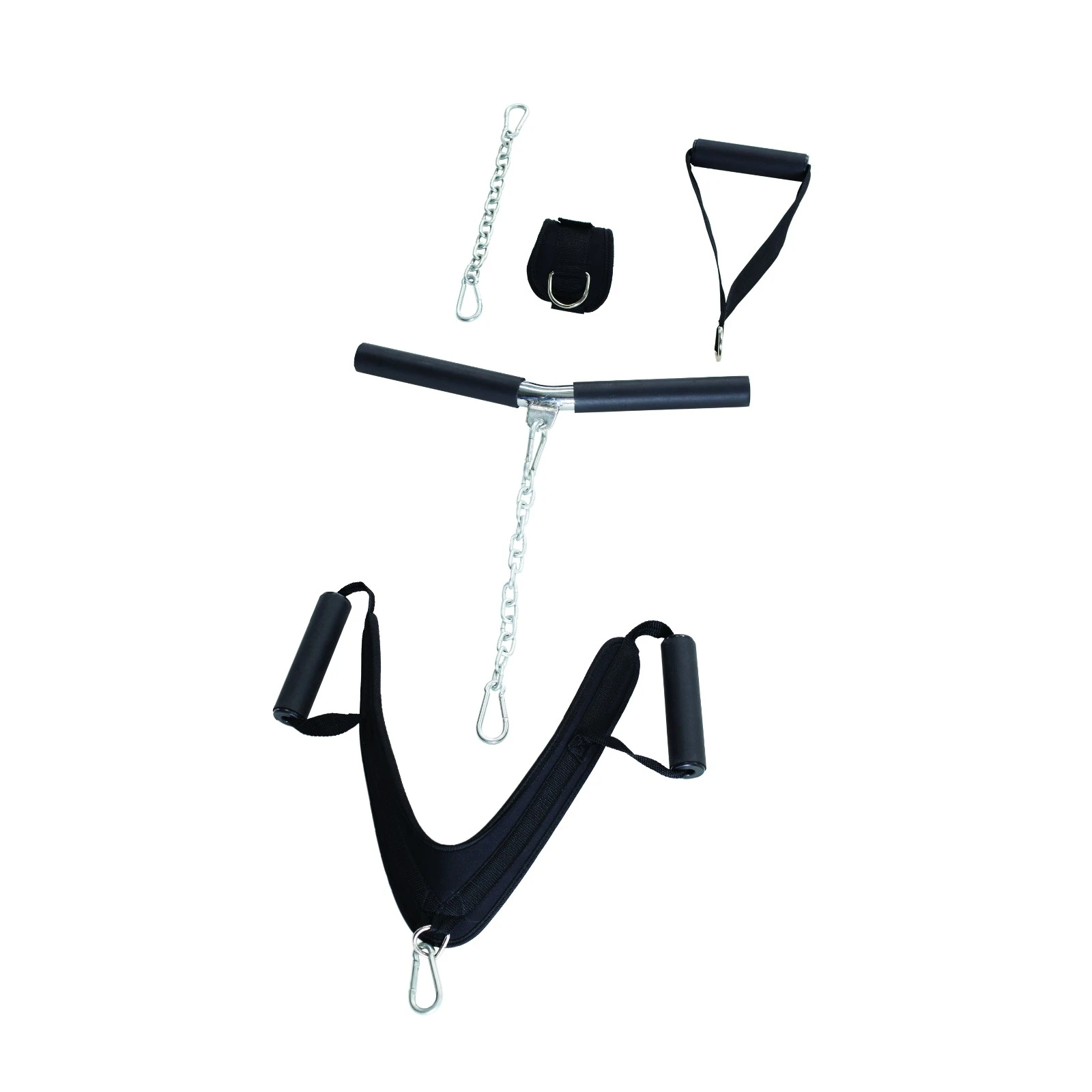 - leverans inkl latsdrag stång, 2 handremmar (öglor), böjd multistång, abdominalrem, fotrem, kedja, 3 krokar och falskhållare