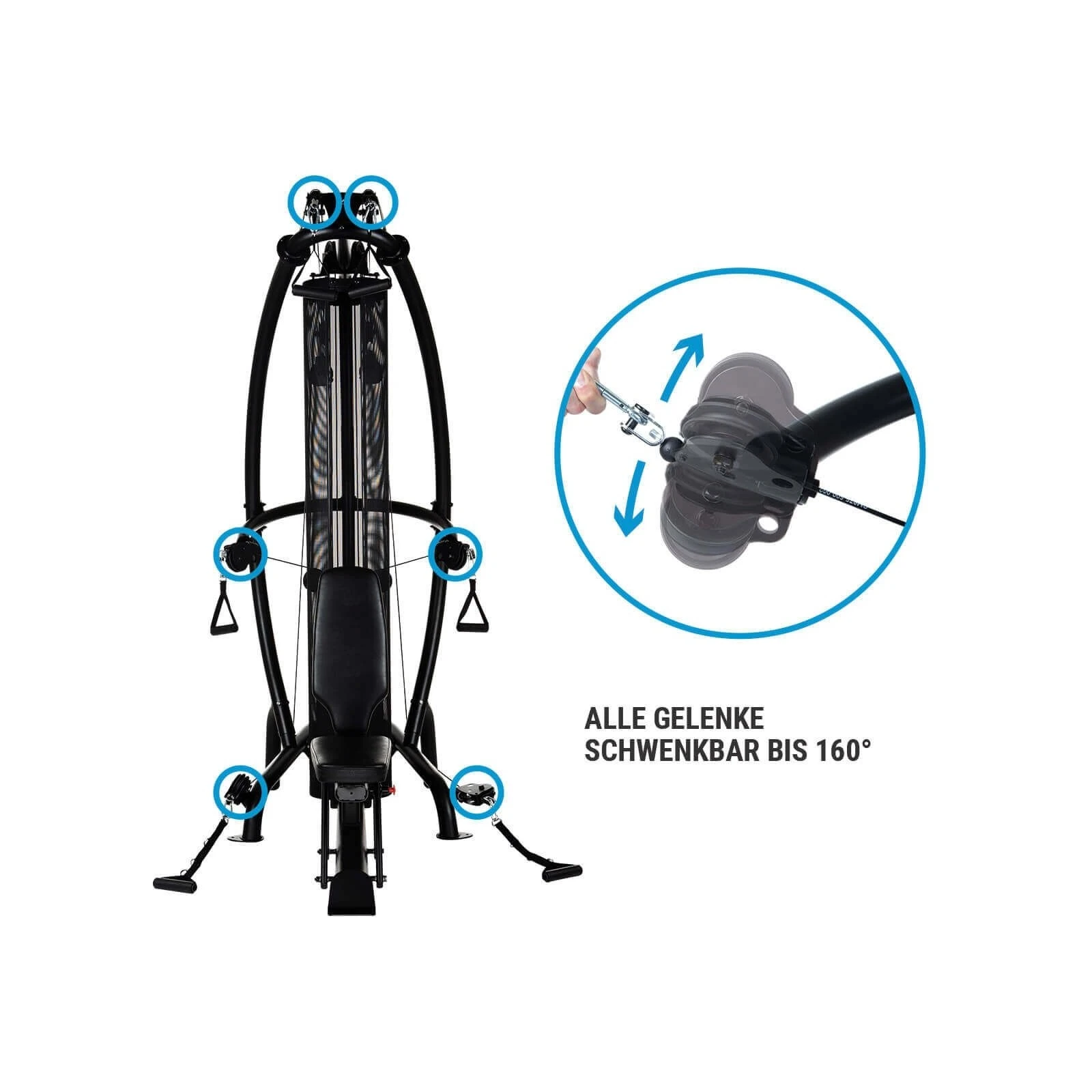 - upp till 160 ° svängbara gångjärn i övre, mellersta och nedersta delen för variationsrika övningar