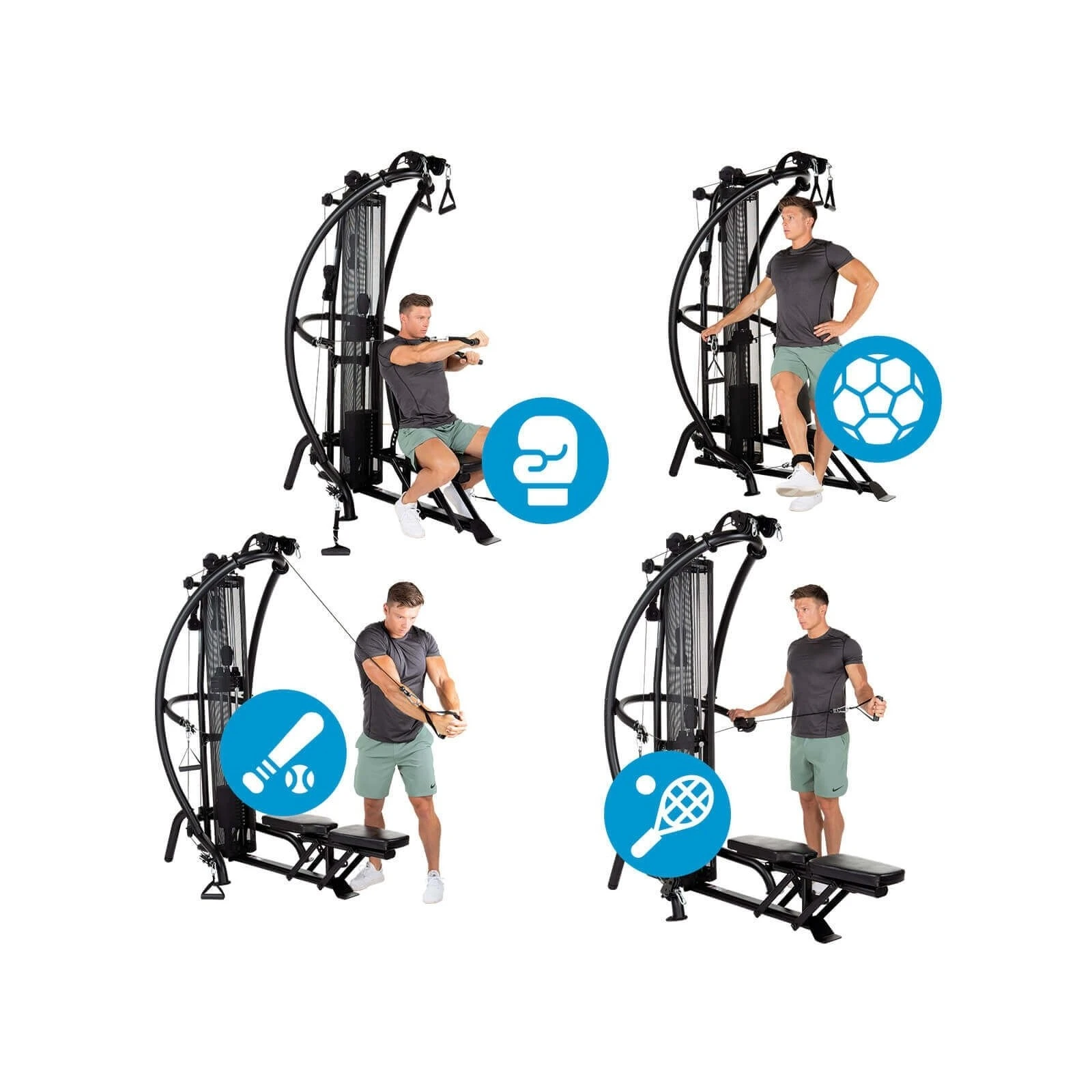 Viktbelastningen för vajerövningarna kan ändras i 4,5kg-steg, så att inte bara biceps och triceps tränas utan även mindre