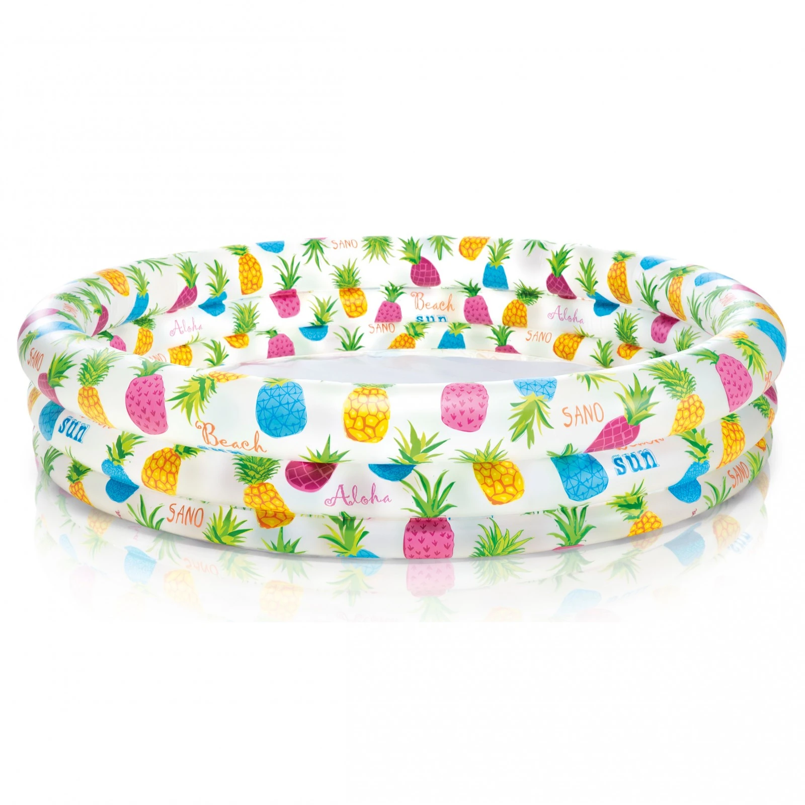 Med Intex 3-ringspool kan du välja mellan två coola mönster. Poolen är utrustad med 3 luftkammare och säkerhetsventiler. Tack vare den slitstarka vinylen är poolen perfekt för lekande och stojande barn.