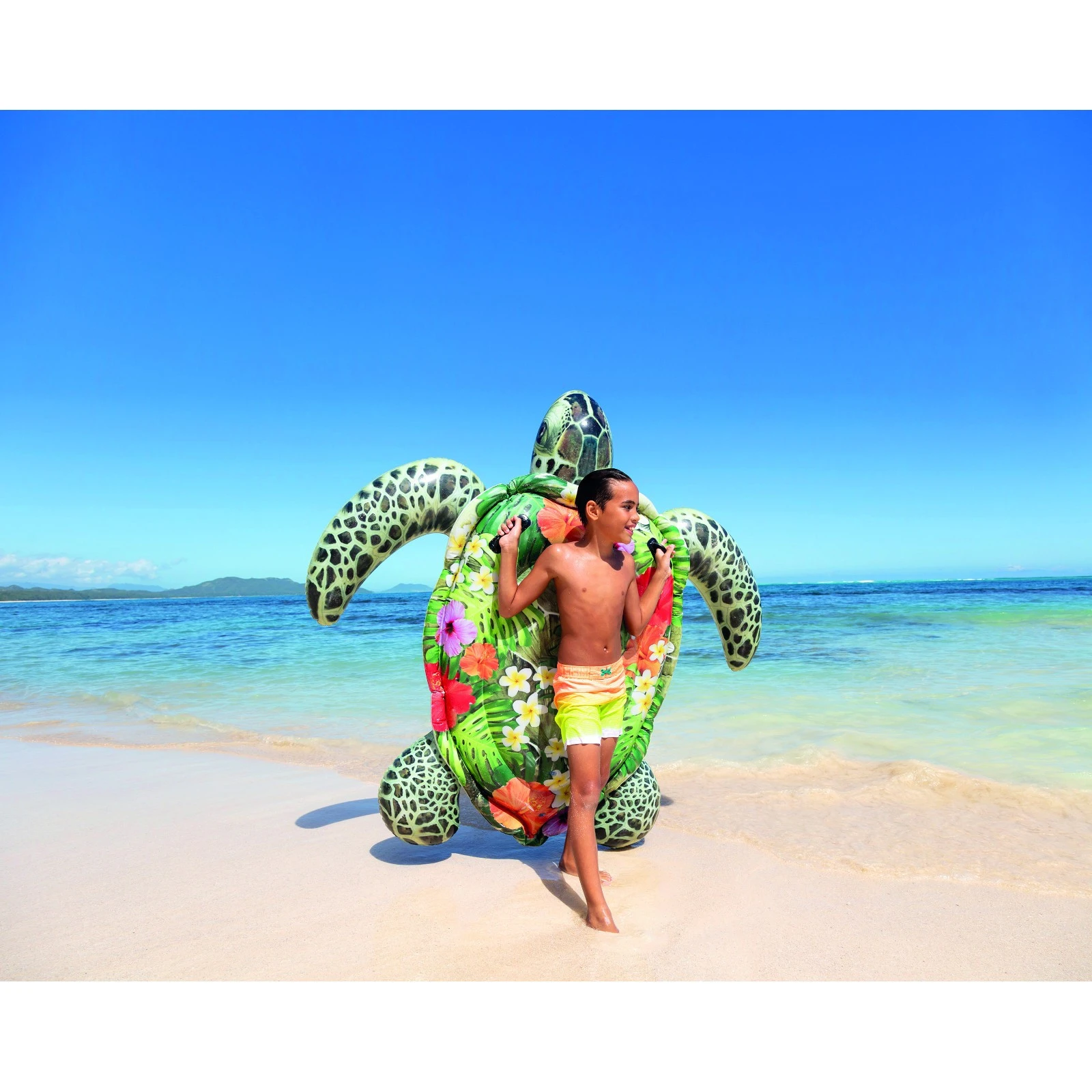 Intex RideOn Realistic Sea Turtle är den perfekta djurkamraten för ännu mer skoj på vattnet. Lämplig för barn från 3 år, du kan använda sköldpaddan hemma i poolen, i havet eller i simbassängen. Havssköldpaddan kan lätt pumpas upp, vikas ihop kompakt i bilen och snabbt göras redo för förvaring.