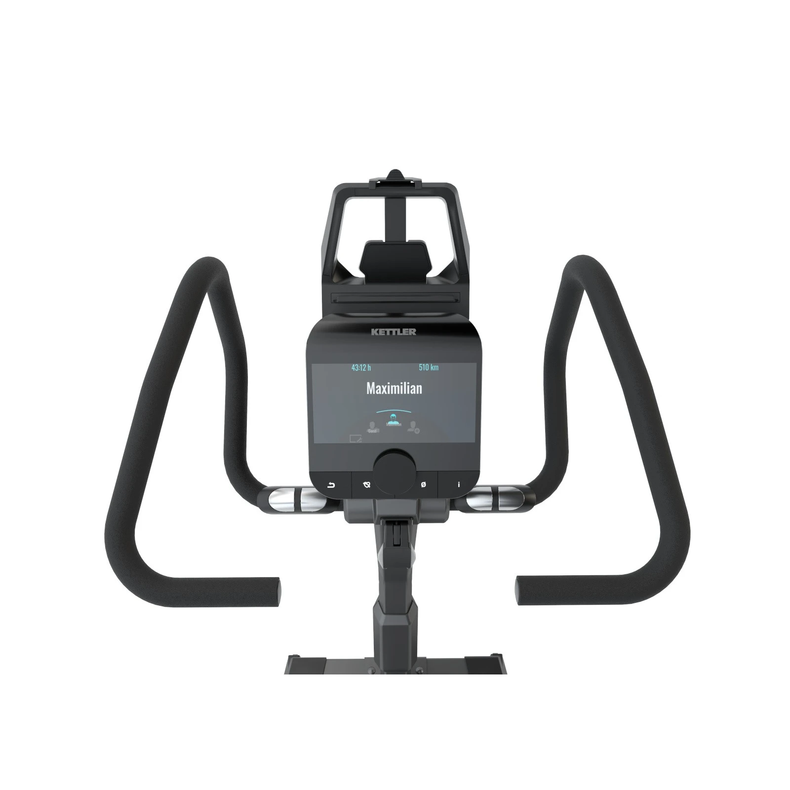 Kettler motionscykel Tour 800 är utrustad med en gedigen premium-konsol. Den har en elegant yta av akryl och övertygar med en enkel, intuitiv hantering. Dessutom imponerar den centralt belägna vrid- och tryckknappen med sin goda användarvänlighet, vilket gör det enkelt att ställa in önskade program. Träningsdatorn hos motionscykeln Tour 800 från Kettler erbjuder användarminne för fyra användare och en gäst och har sju visningsspråk (EN, DE, FR, IT, NL, POL, RUS). När det gäller träningsvariation och olika träningsalternativ imponerar Tour 800 med många olika program: IPN-coaching, HIIT-träning, Challenge-Trainer, pulscoaching och programkonfigurator för ett oändligt antal individuella träningspass. Som alla motionscyklar i Tour-serien från Kettler har 800-modellen också de två nya användarlägena: AUTO-läge och MANU-läge.