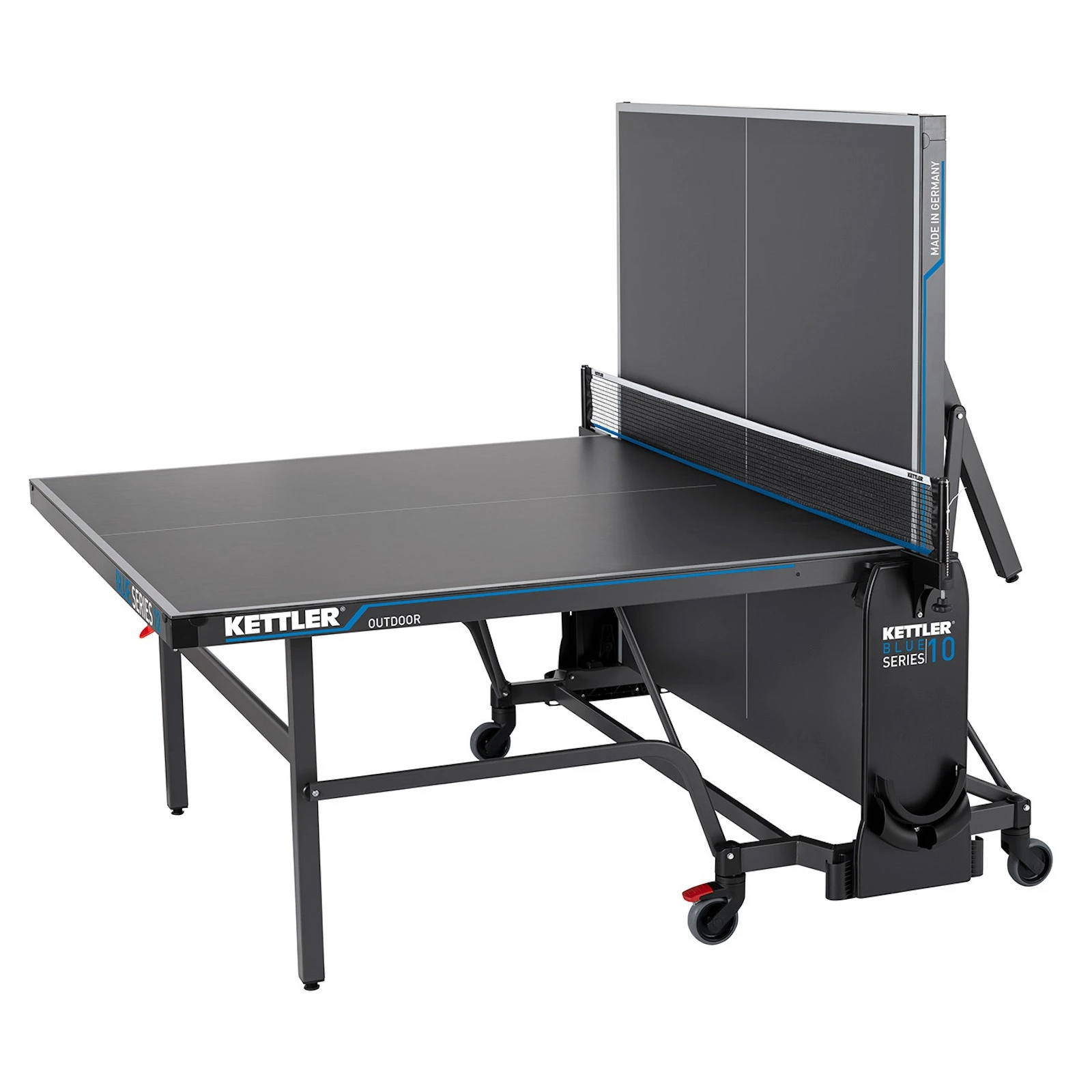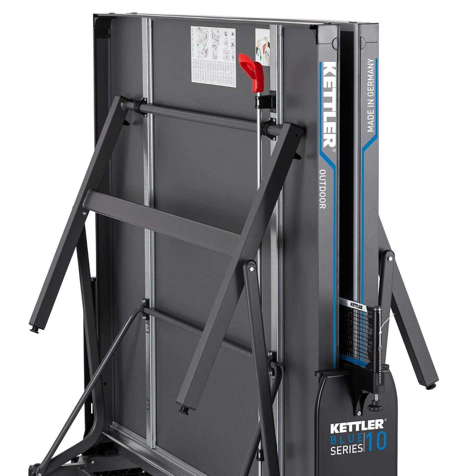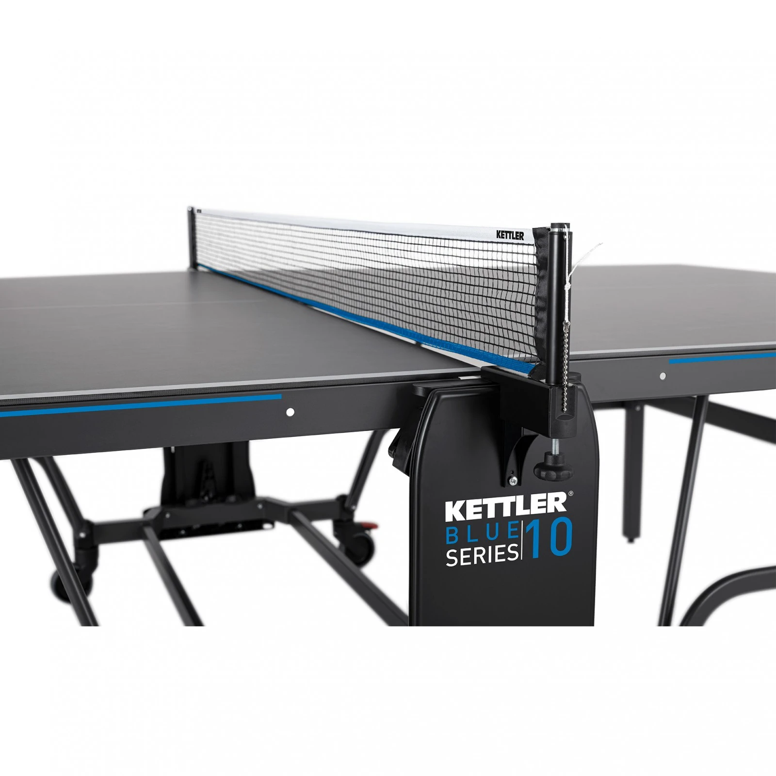 För en synnerligen hög spelkomfort har Kettler utrustat bordtennisbordet Blue Series 10 med många praktiska detaljer. Blue Series 10 har integrerade boll- och rackethållare på varje bordshalva. Det besparar dig tiden för upplockandet av bollarna och därigenom förkortas väntetiden mellan bollduellerna väsentligt. Såväl bordet som nätet är höj- och sänkbart och kan anpassas perfekt till spelarens längd. På så sätt kan även de yngsta spela och träna vid bordtennisbordet.