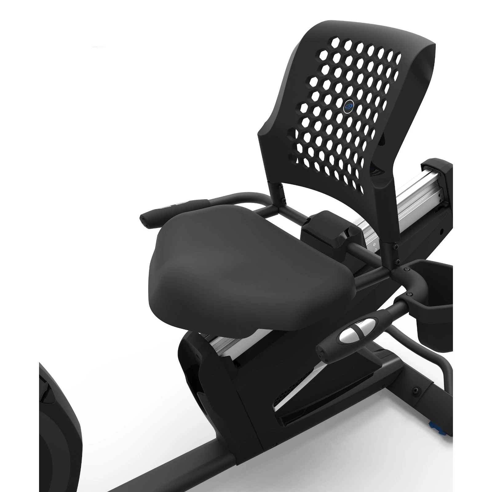 Förutom optimal träningskomfort och robust konstruktion imponerar recumbentcykeln med en intuitivt styrd träningsdator. Med de 29 träningsprogrammen kan du genomföra en optimal konditions-, återhämtnings- och intervallträning. Träningsintensiteten kan ställas in i 25 nivåer med hjälp av multifunktionskonsolen.