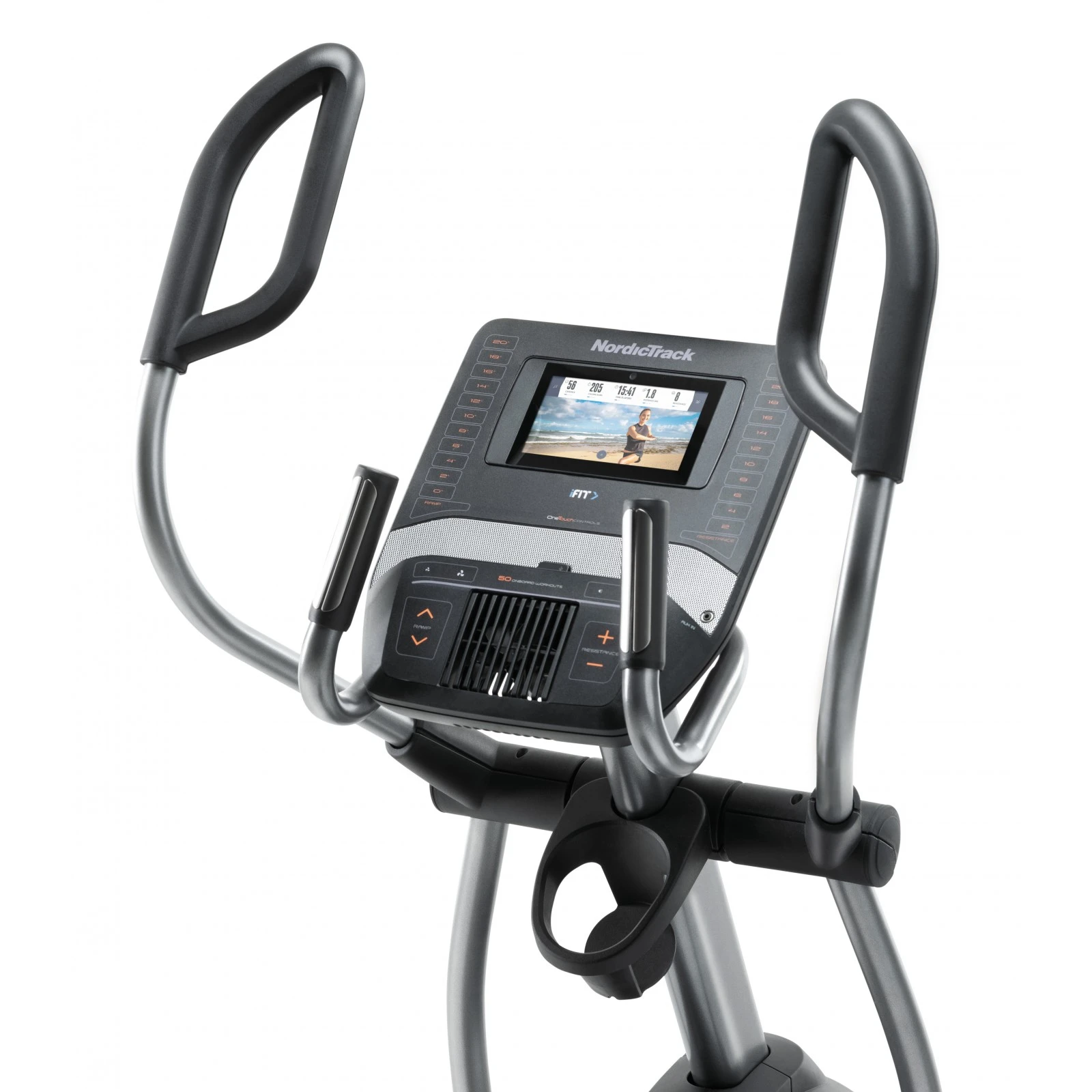 NordicTracks crosstrainer Commercial 9.9 kombinerar träning och underhållning. Med den stora bakgrundsbelysta 7-tums konsolen har du alltid koll på alla viktiga träningsdata.