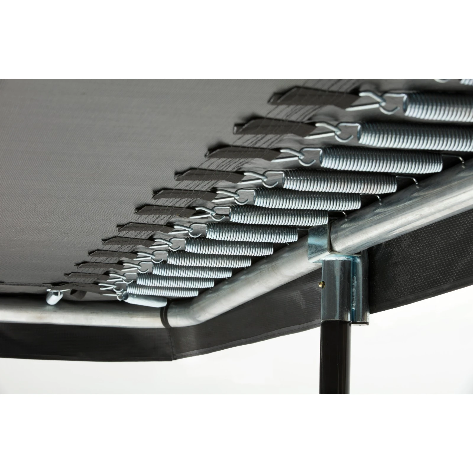 Studsmattan Comfort Edition från Salta kännetecknas av sin robusta ramkonstruktion och attraktiva design. Ramen består av en stabil stålkonstruktion. En tjock vaddering i skyddskanten och skyddsnätet säkerställer säker glädje och komfort när du hoppar. Tack vare stålspetsringen hålls det mjuka, finmaskiga skyddsnätet mycket snyggt sträckt.
