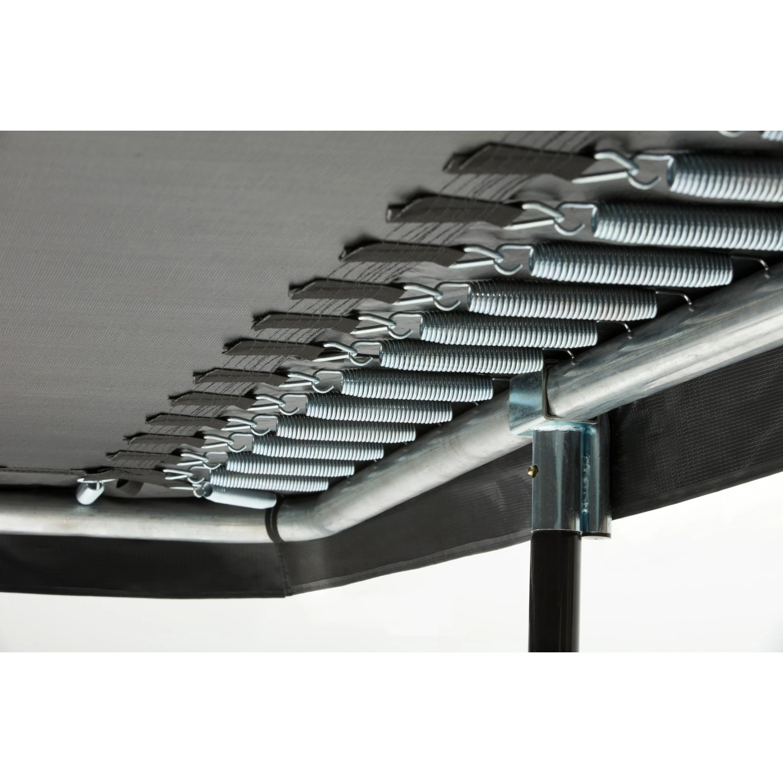 Fjädrarna, som är täckta med en 29 cm bred och 20 mm tjock skyddsvaddering, garanterar den nödvändiga säkerheten. Dessutom erbjuder skyddsnätet och de skumgummitäckta nätstolparna säker fritidsglädje utan betänkligheter.