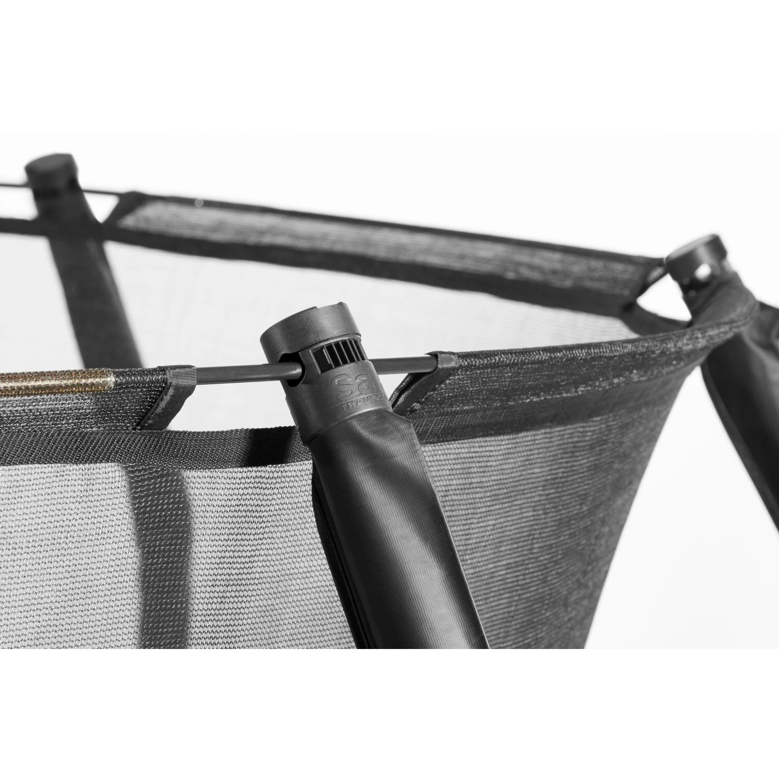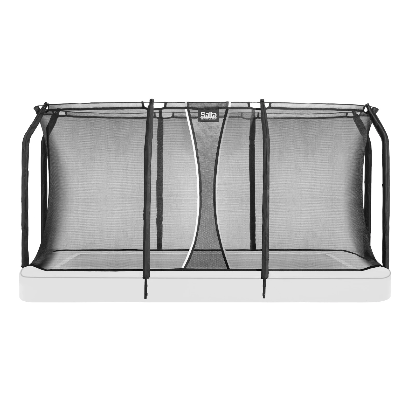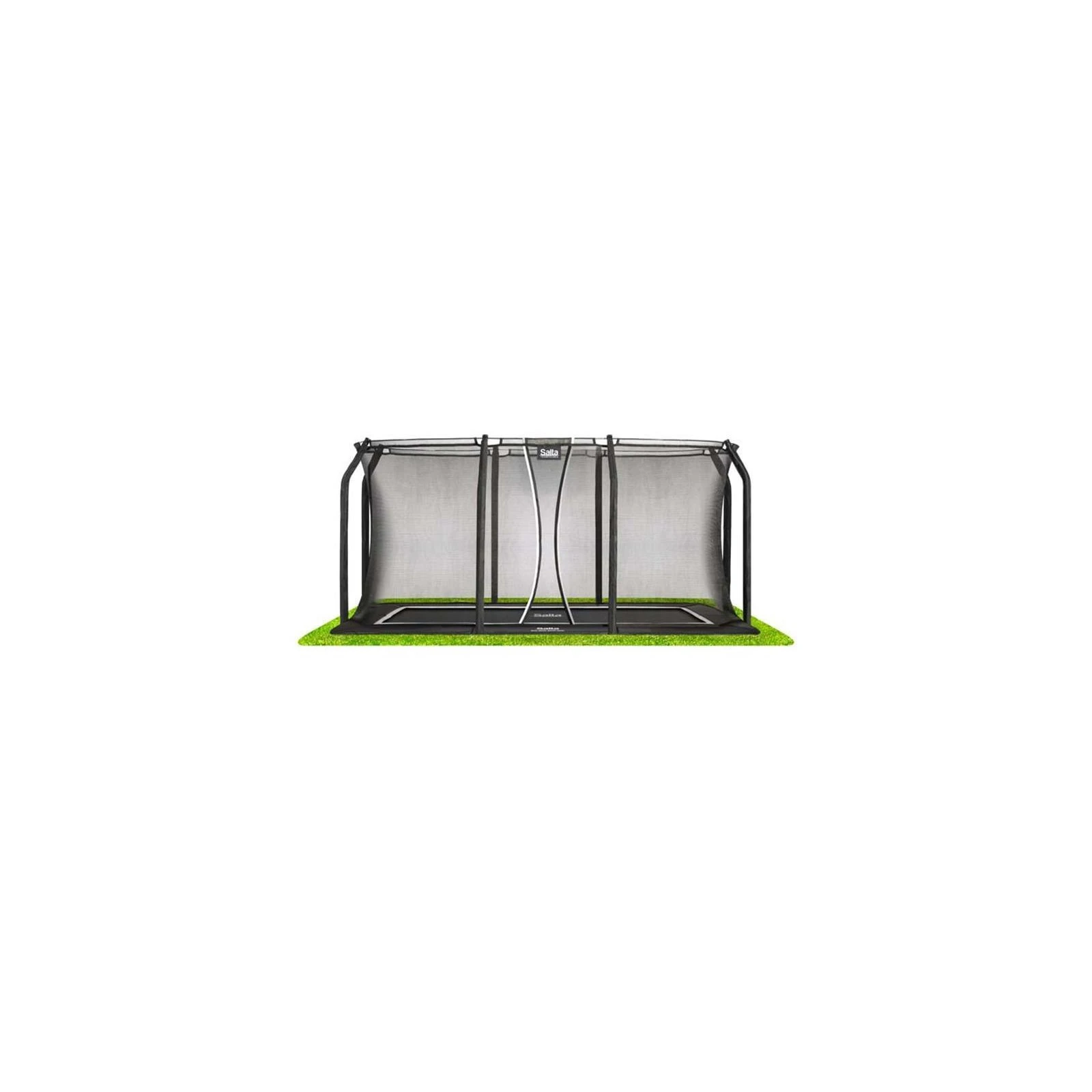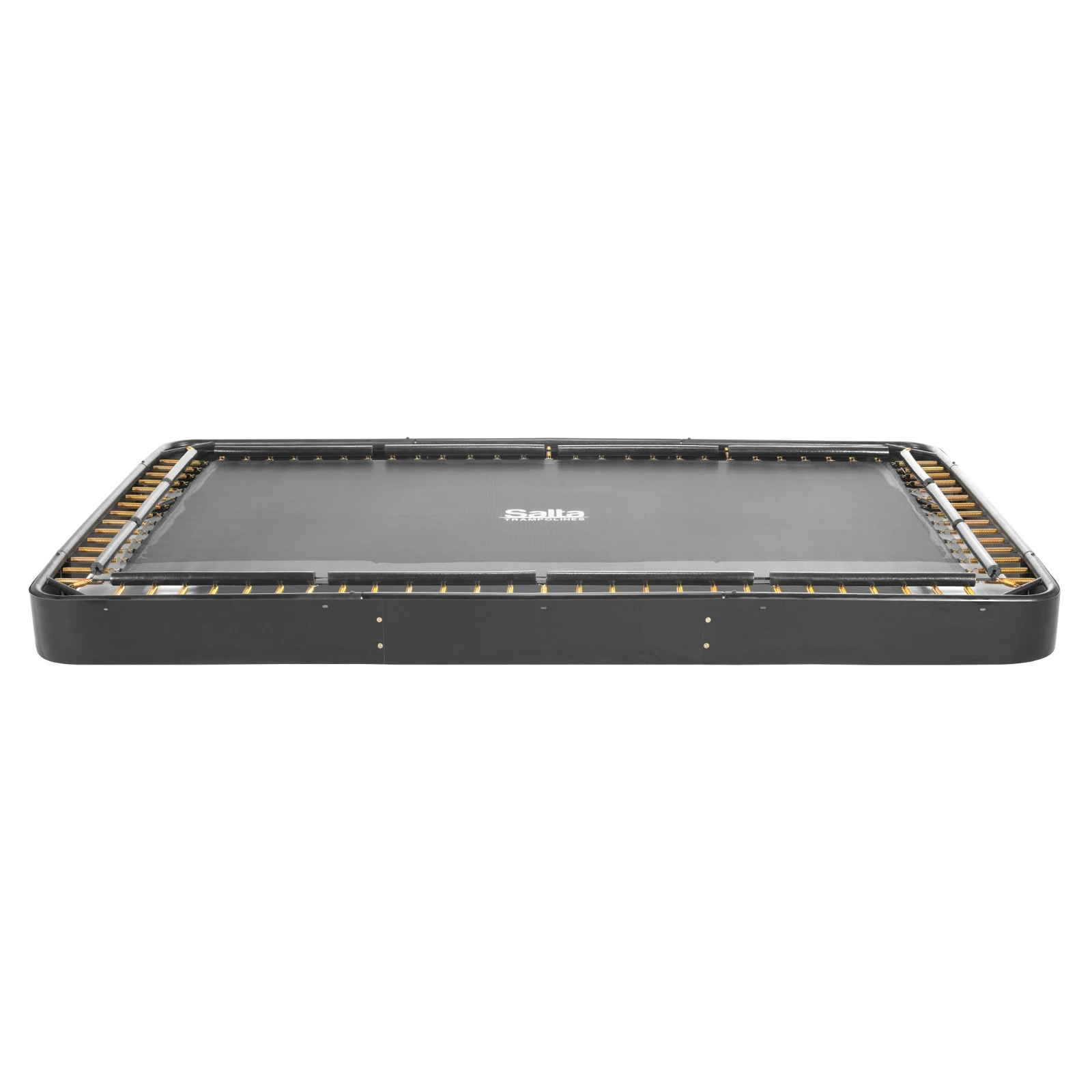 Tack vare sin rektangulära form kan studsmattan enkelt placeras i trädgården och passar därmed också för mindre trädgårdar. Hela studsmattans längd kan användas för höga hopp, och den rektangulära formen skapar en optimal kontroll.