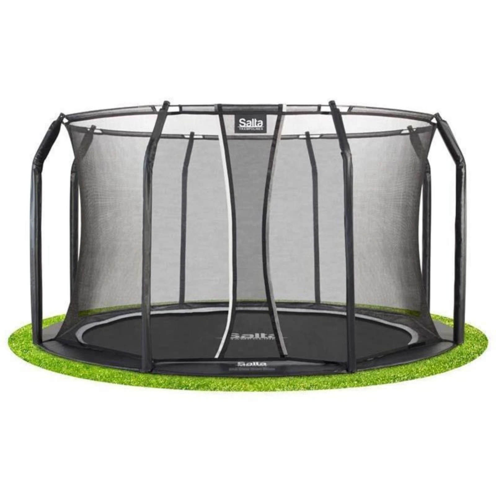 Salta Studsmatta Royal Baseground inkl. säkerhetsnät grävs ner i jorden, är därför på marknivå och har tack vare ”Air Performance-systemet” en exceptionellt bra studs. Systemet möjliggör bättre luftcirkulation, vilket minskar motståndet på hoppytan. Resultatet är en stark återfjädringseffekt och en mycket bekväm och tyst hoppning.