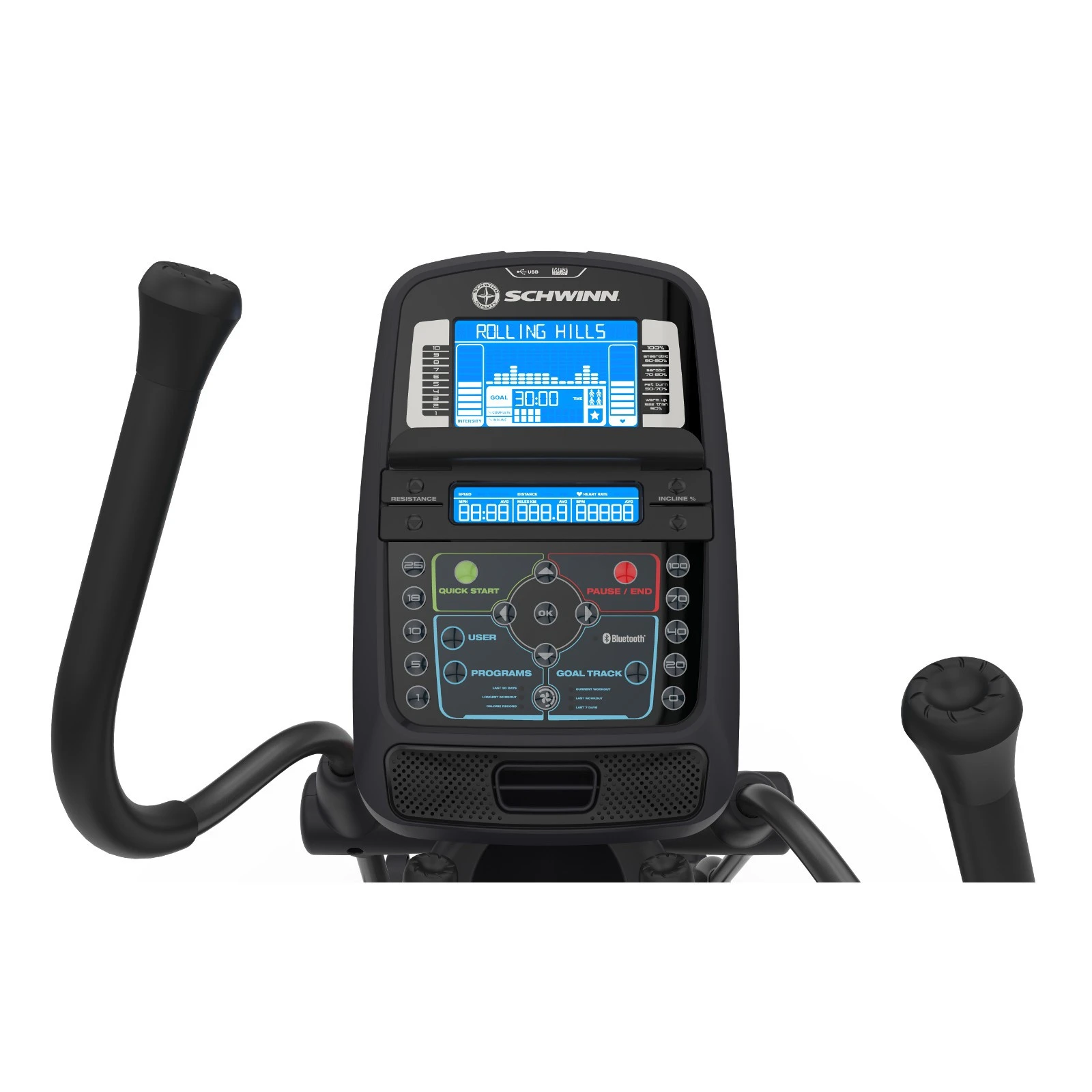 Schwinn crosstrainer 570E är utrustad med ett svänghjul på 10 kg, en steglängd på 50,8 cm och en Q-faktor på 7,5 cm (pedalavstånd) för bekväma, träningspass som är skonsamma för lederna. 29 program tillåter varierade träningspass. Användarminnen för upp till 4 idrottare gör att individuella inställningar kan sparas.