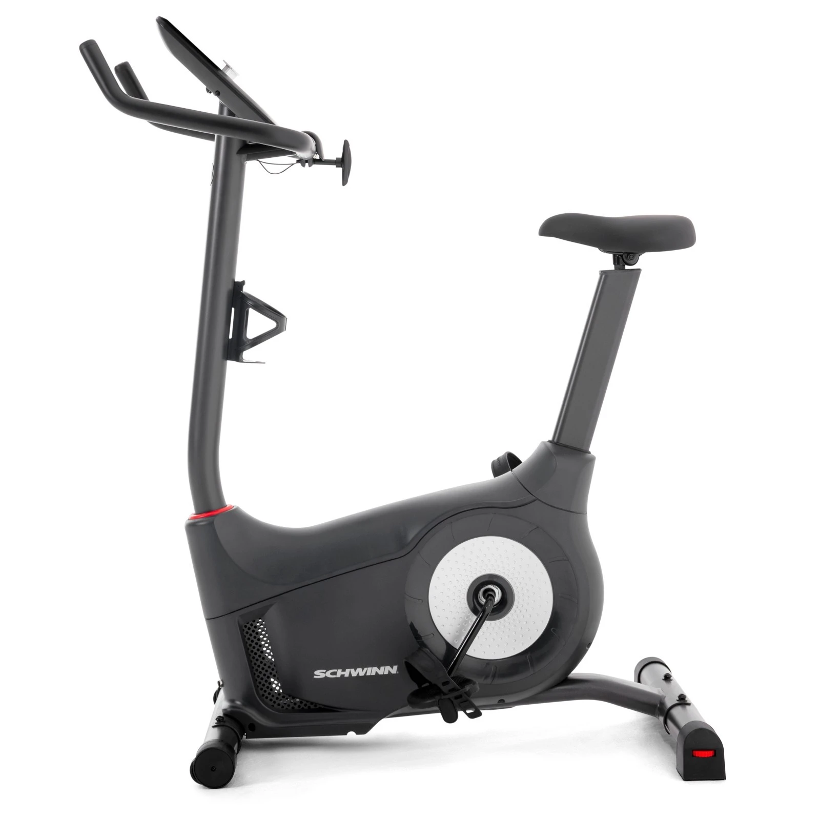 Motionscykeln 130i har dessutom en MP3-ingång som du kan använda för att lyssna på din favoritmusik när som helst under träningspasset via högtalarna i konsolen. Den kan också användas för att titta på din favoritserie med den inbyggda hållaren för surfplatta. Dessutom har träningscykeln en inbyggd flaskhållare och en fläkt justerbar i 3 steg för att säkerställa bästa möjliga förhållanden under träningen. Tack vare transporthjulen kan träningscykeln från Schwinn enkelt och bekvämt flyttas efter träningen.