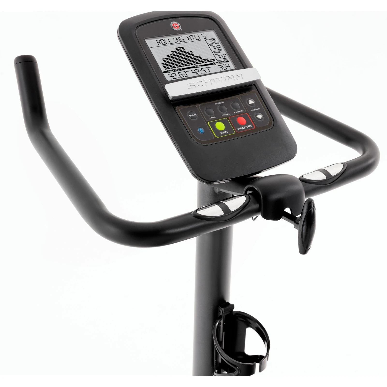 Träningskonsolen på motionscykeln från Schwinn är mycket tydlig och användarvänlig. Det inbyggda DualTrack™ 2 LCD-bildskärmssystemet garanterar optimal läsbarhet av alla träningsdata. Dessutom säkerställer de 20 motståndsnivåerna rätt intensitet för både lugna och intensiva träningspass. Det stora urvalet av olika träningsprogram erbjuder dig variation och håller dig motiverad.