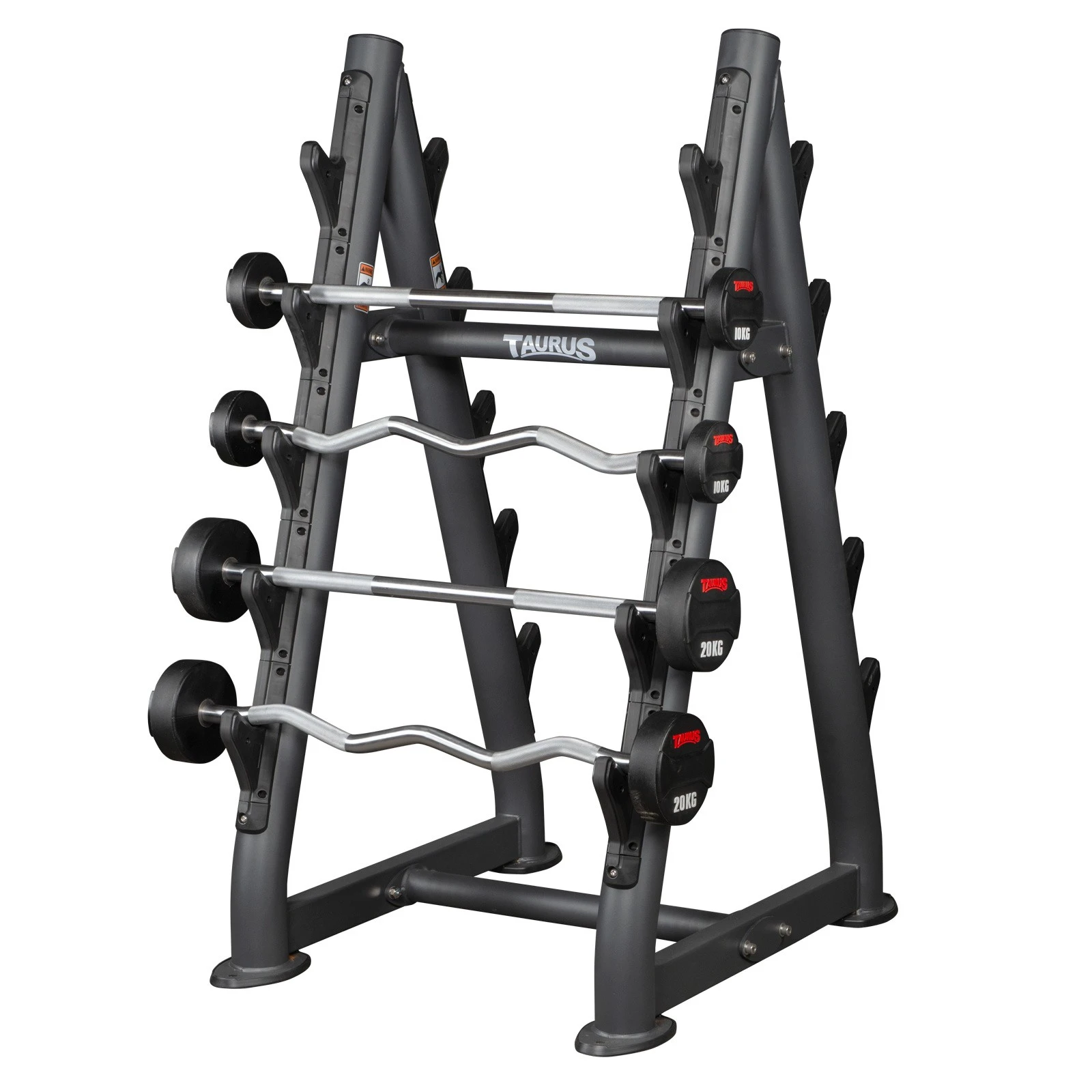 - dimensioner i uppställt läge – Taurus Elite ställning för skivstänger: