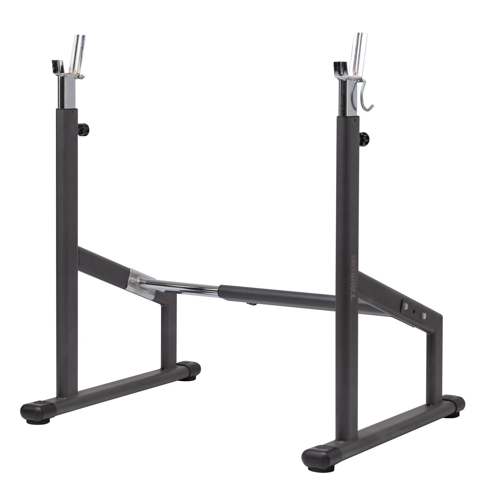 Taurus Hantelställ Deluxe utmärks av stabil stålram och är mycket slitstark samt belastbar. Pulverlackeringen ser inte bara mycket stilig ut, den ger också bra skydd och ökar livslängden av Taurus Hantelställ Deluxe avsevärt. Detta hantelställ för lång skivstång är mycket variabelt och justerbart: bredden kan justeras i 5 lägen (innermått mellan 75 – 118 cm) och höjden kan justeras i 9 lägen.