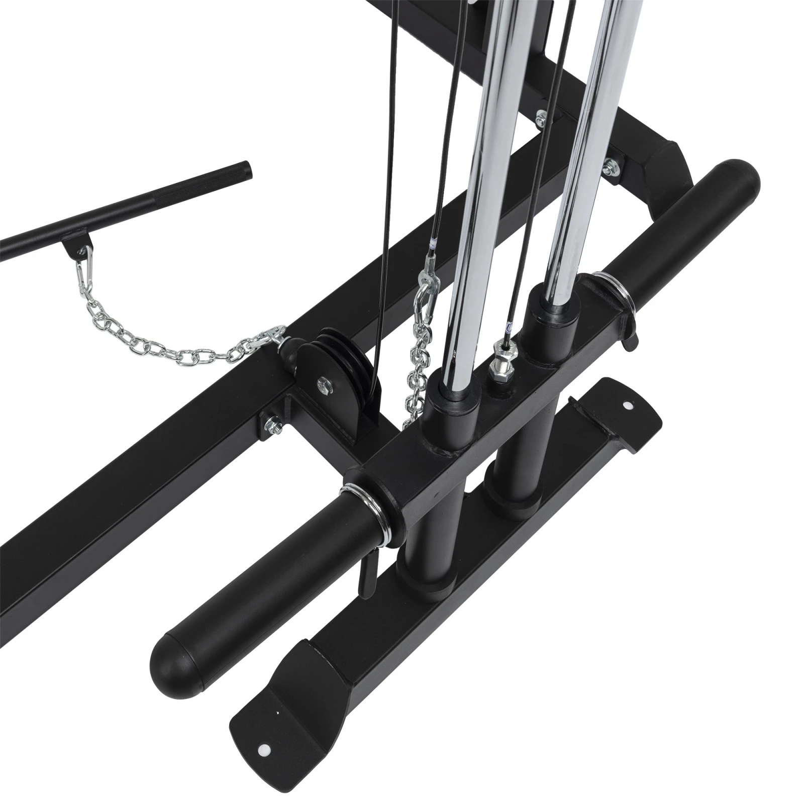 Med detta tillbehör får du ytterligare två träningsstationer på din Taurus power cage: ett högt beläget kabeldrag som gör att du kan utföra latsdrag och tricepspress, liksom ett lågt beläget kabeldrag som passar för sittande rodd och stående bicepscurls. I leveransen ingår därför en bred latsdragstång och en kort roddstång.