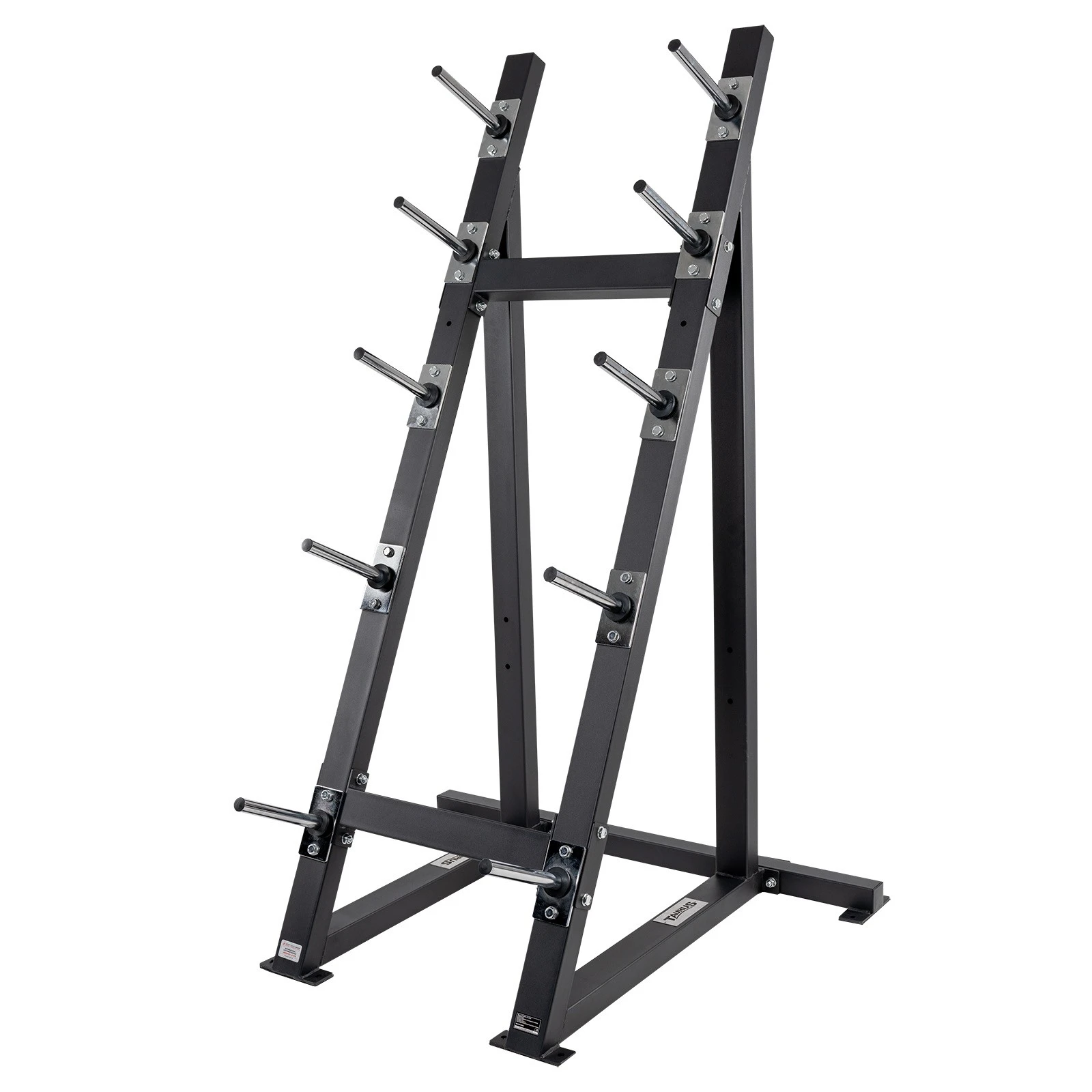 - The distance between the weight plates increases from top to bottom so that different weight plates/sizes can be ideally stored.