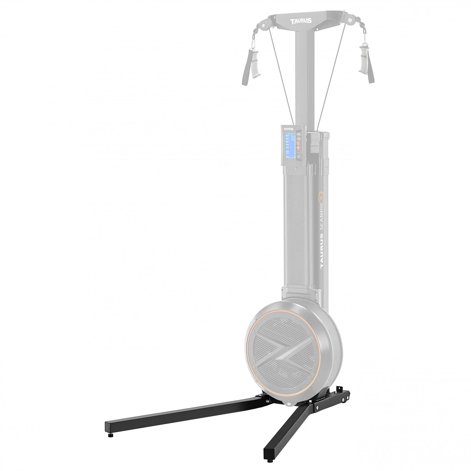 Med hjälp av stödfötterna kan skitrainern Scandic-X från Taurus också placeras fritt i rummet. Maskinen behöver inte längre monteras fast i väggen. Stödfötterna går ut åt sidorna. Detta ger tillräckligt med utrymme för alla övningar och dessutom garanteras högsta stabilitet.