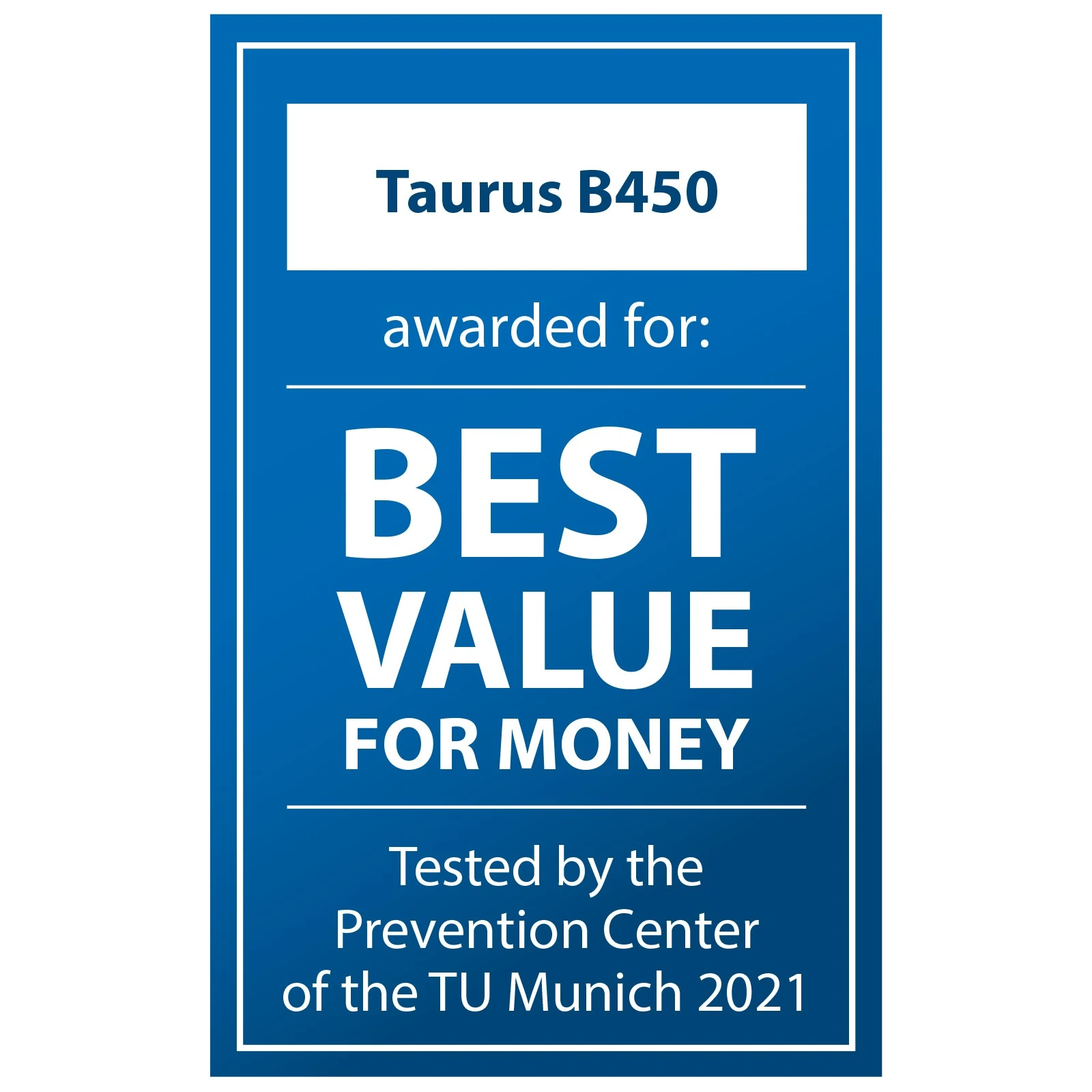 - Taurus B450 utsågs i träningsbänkstestet (2021) utfört av preventionscentrum på Münchens tekniska universitet till segrare i bästa pris i förhållande till kvalitet. Du kan hitta den totala rankingen och resultaten från de andra kategorierna .