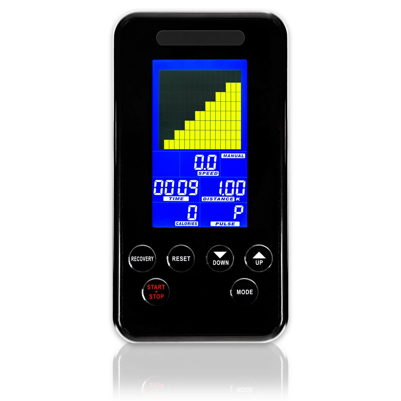 På Taurus Träningscykel Racing Z9 går det att inställa bromseffekten /belastningsgraden på samma sätt som på ergometercyklar. Via kontrollpanelen kan motståndet väljas mellan 10 und 350 Watt i 5-Watt-steg. Då finns det utmaningar och njutning för alla oavsett träningsnivå. Pulsfunktion finns också med och i displayn visas pulsvärdena tydligt och gott läsbart. — helt perfekt för bästa träningskoll.