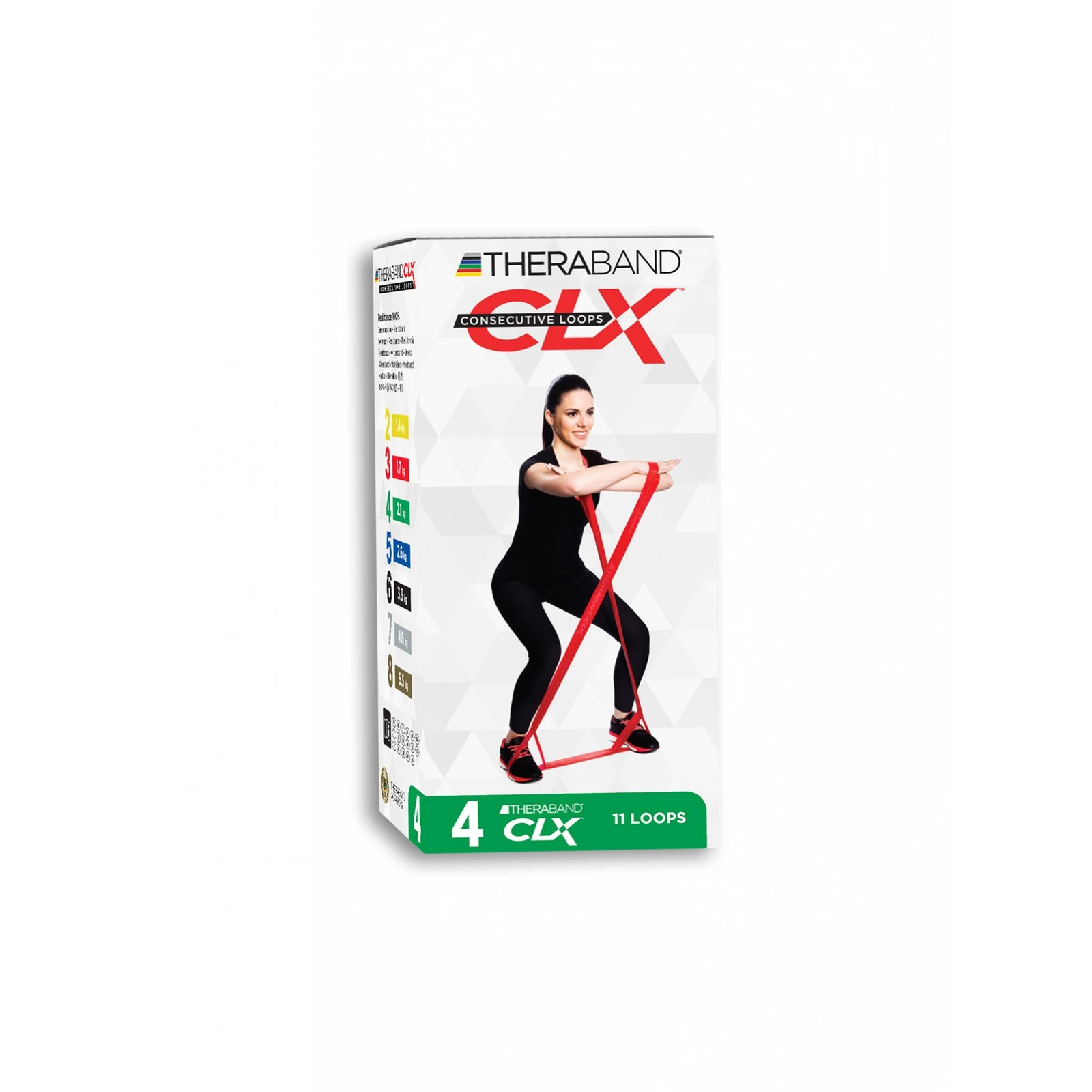 samt förenklar fastsättningen. Härigenom hör trassel och irriterande knutar till det förgångna. Thera-Band CLX Band finns i sju olika motstånd, och är därigenom lämpligt för alla träningsnivåer. CLX-bandet är fritt från latex och därför mycket hudvänlig.