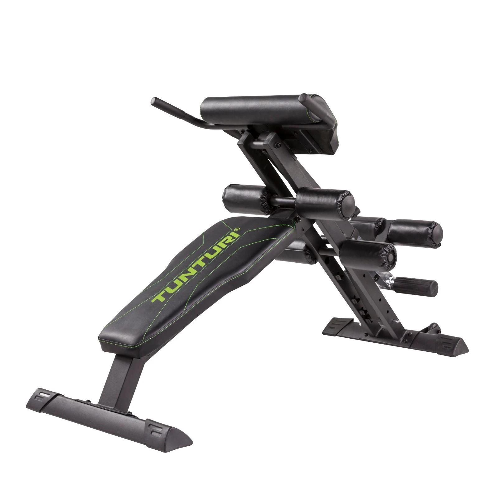 par handgrepp för anpassning av träningsintensitet av de olika övningarna. Baskonstruktionen utgör träningsbänken för mag- och ryggövningar samt för träning av de sneda mag- och bålmusklerna. Kombinerad Abdominal-Board & Roman Chair finns för stretchning och överstretchning för målinriktad träning av ryggmusklerna. Precis som träningsbänken kan även Abdominal-Board snabbt justeras för varierad träningsintensitet.
